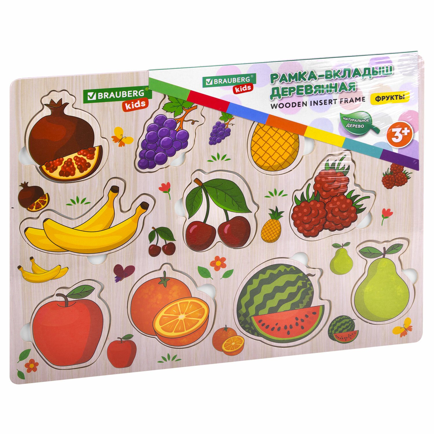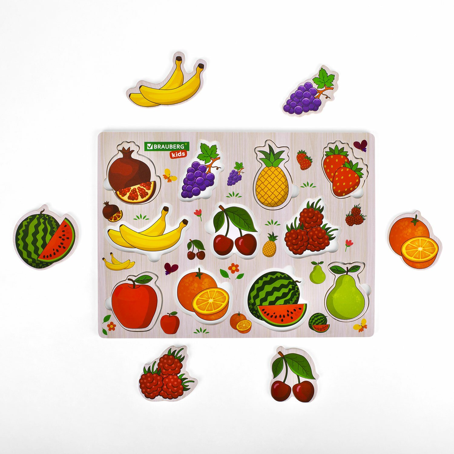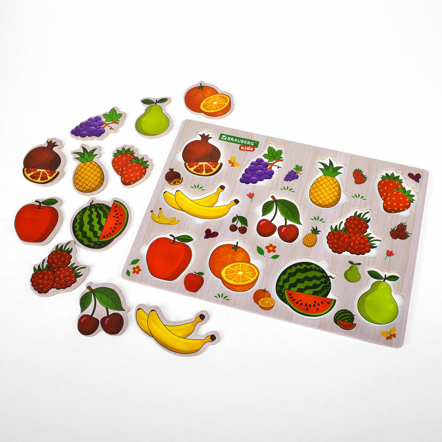 Рамка-вкладыш деревянная развивающая "Фрукты и ягоды", 22х30 см, BRAUBERG KIDS, 665254