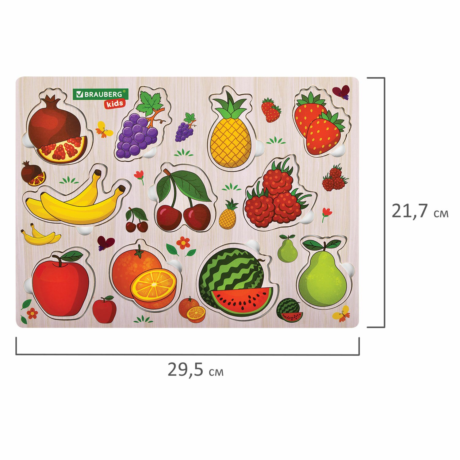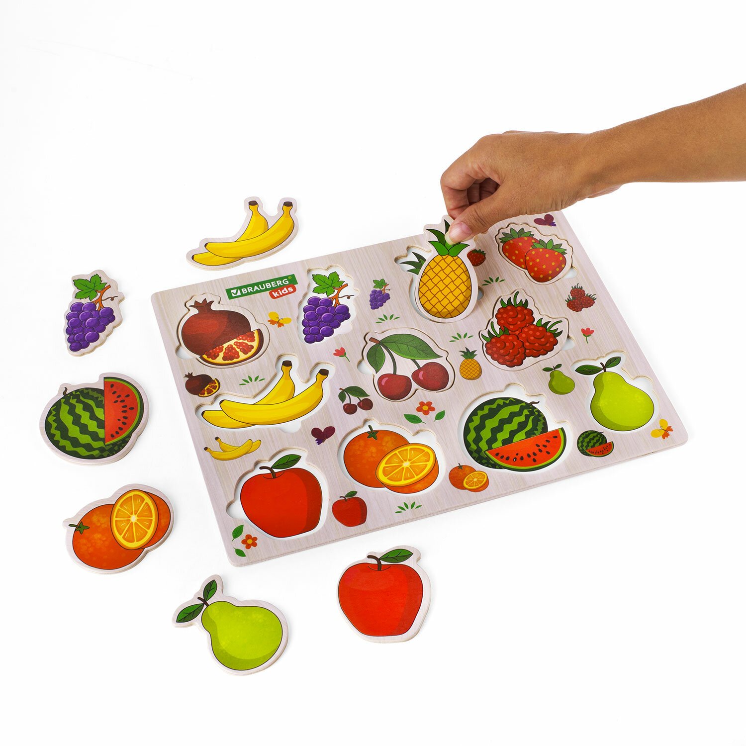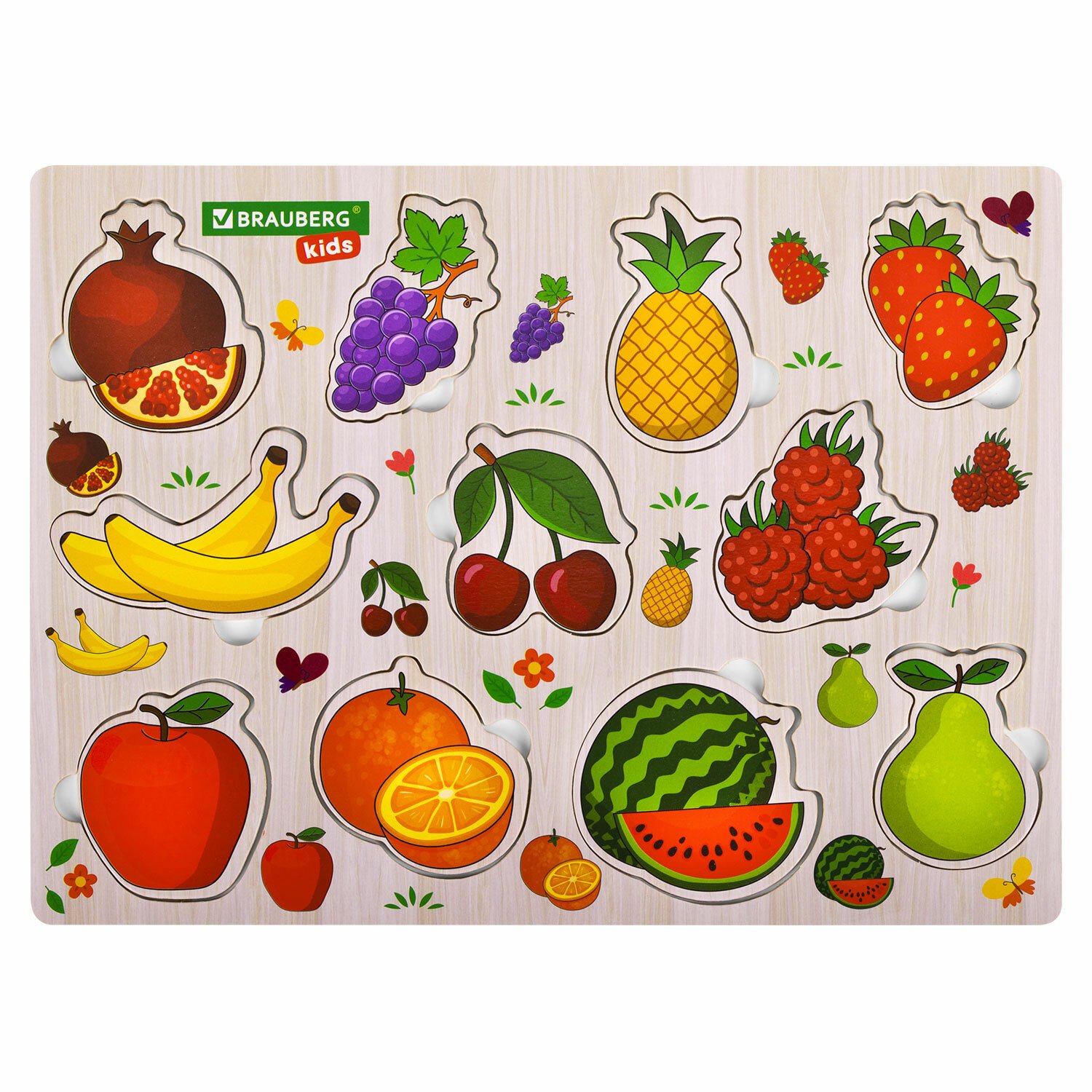 Рамка-вкладыш деревянная развивающая "Фрукты и ягоды", 22х30 см, BRAUBERG KIDS, 665254