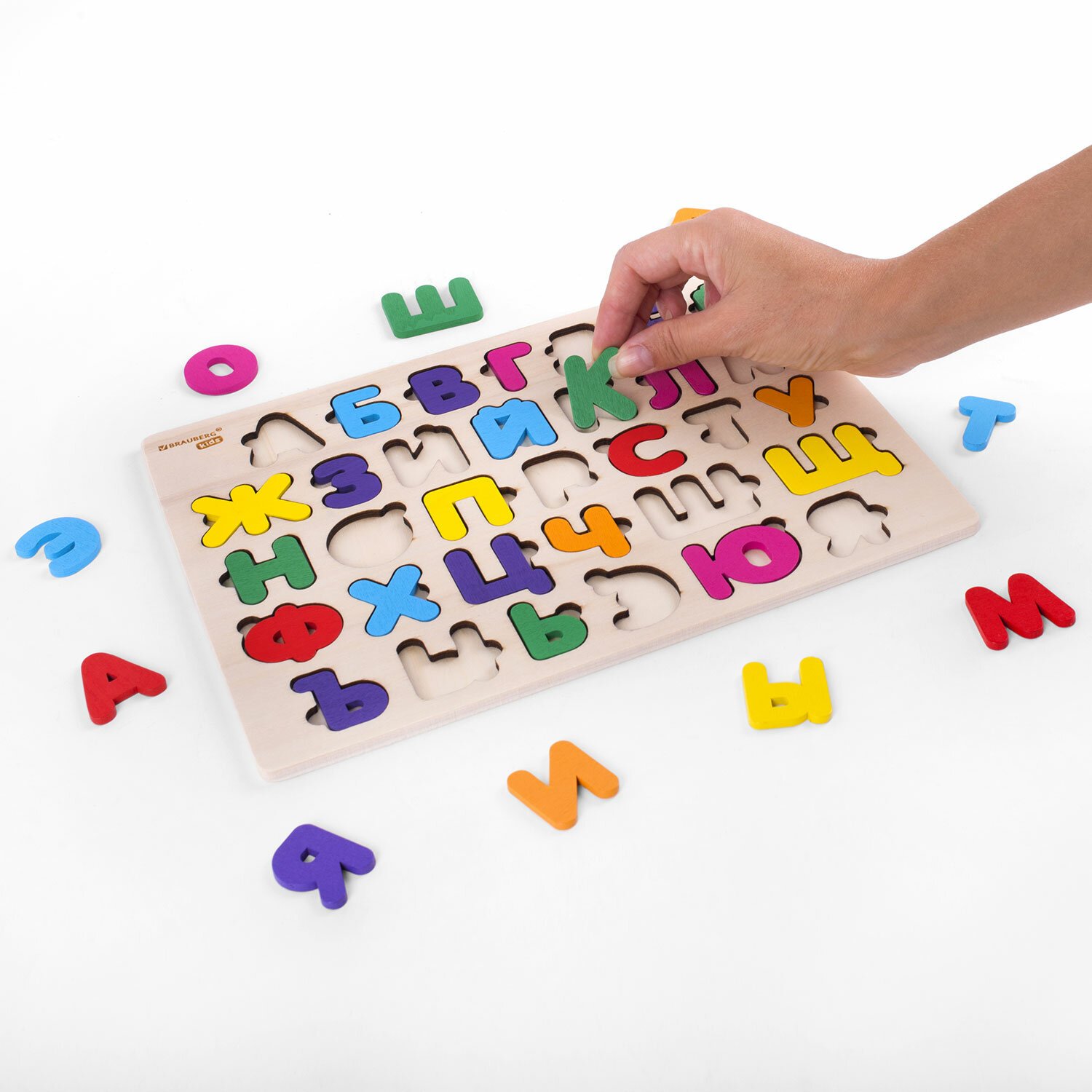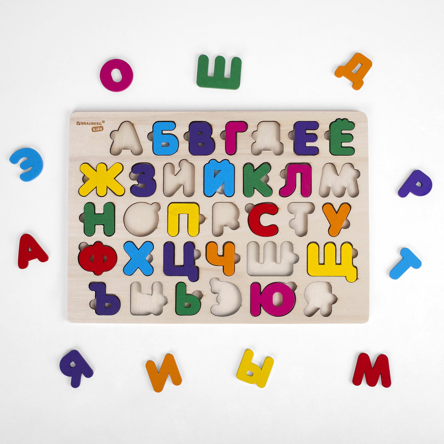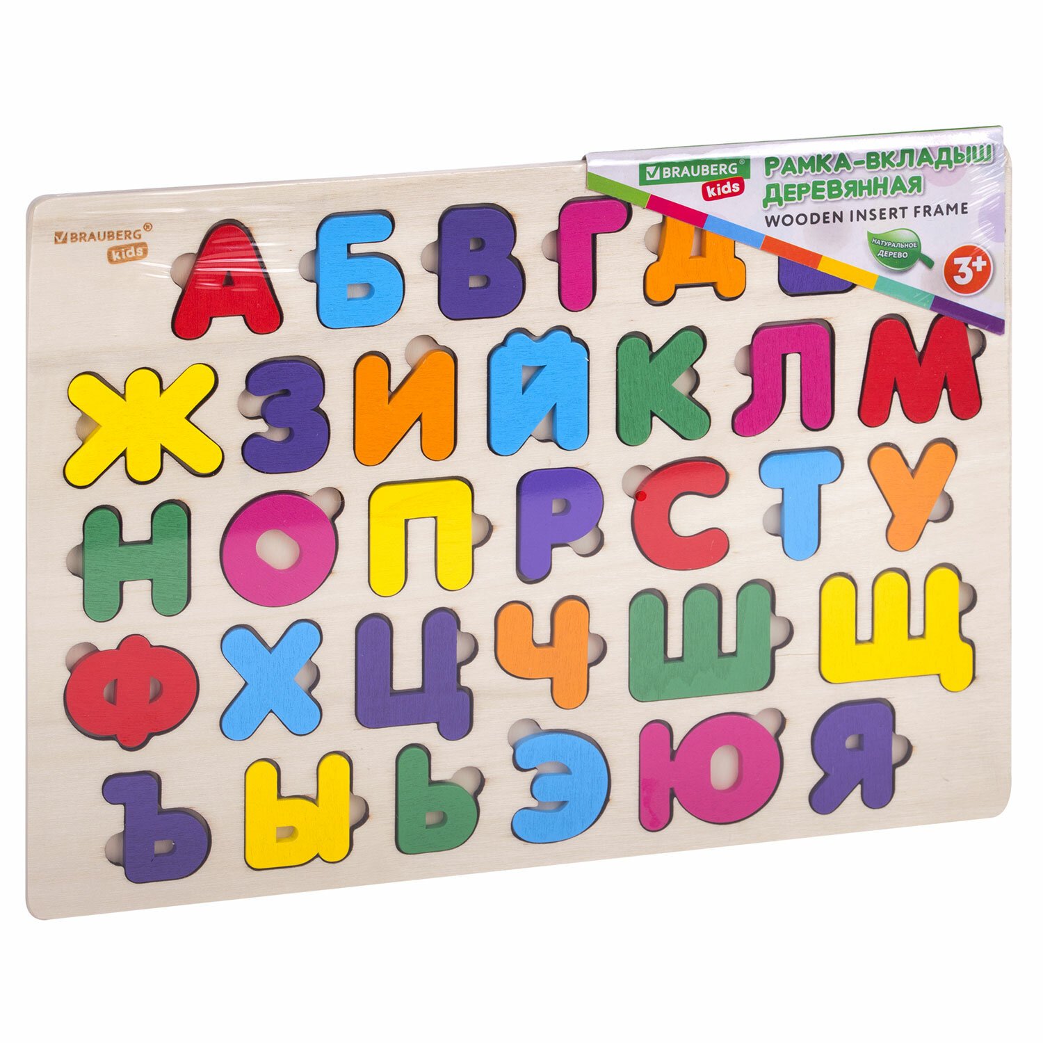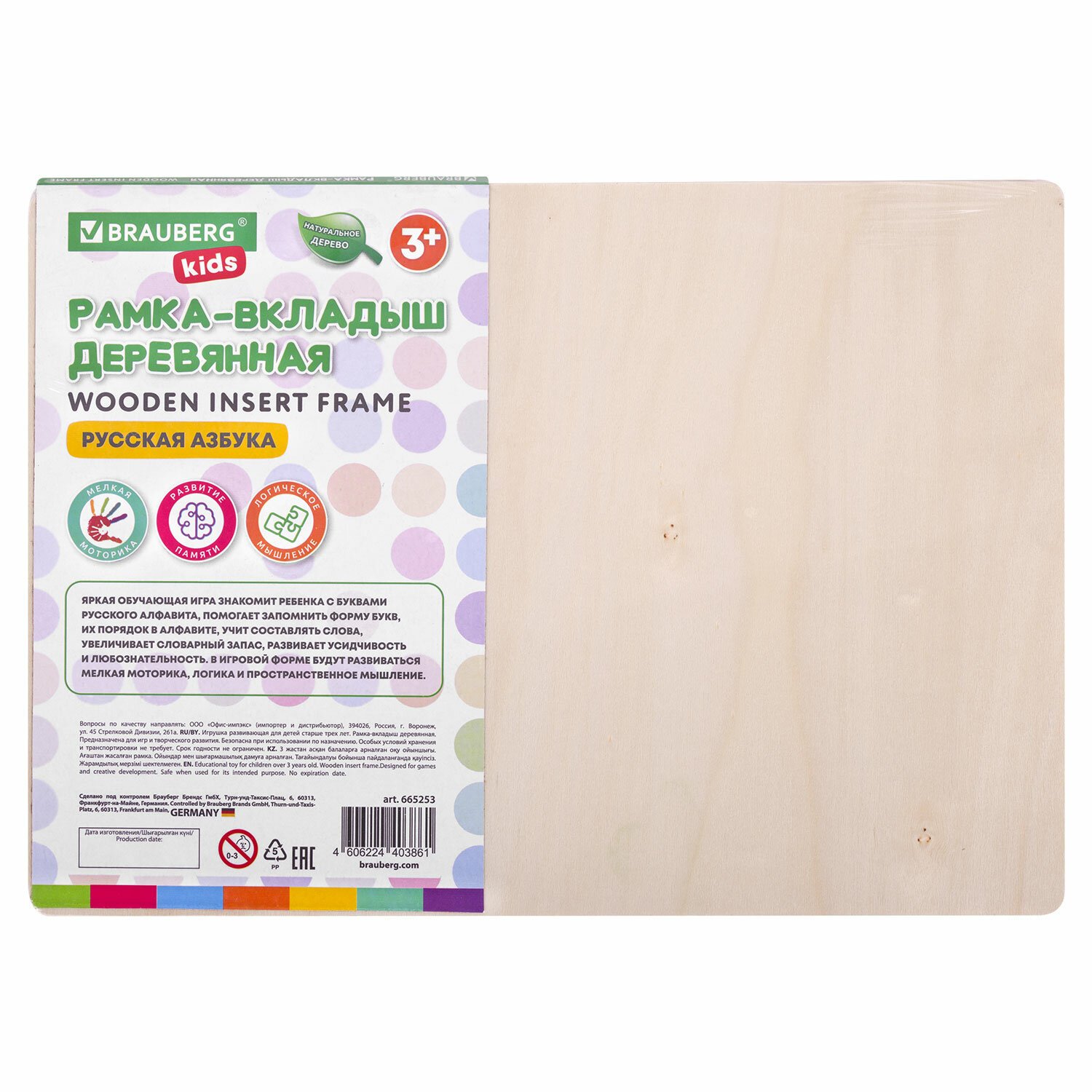 Рамка-вкладыш деревянная развивающая "Русский алфавит", 30х20 см, BRAUBERG KIDS, 665253