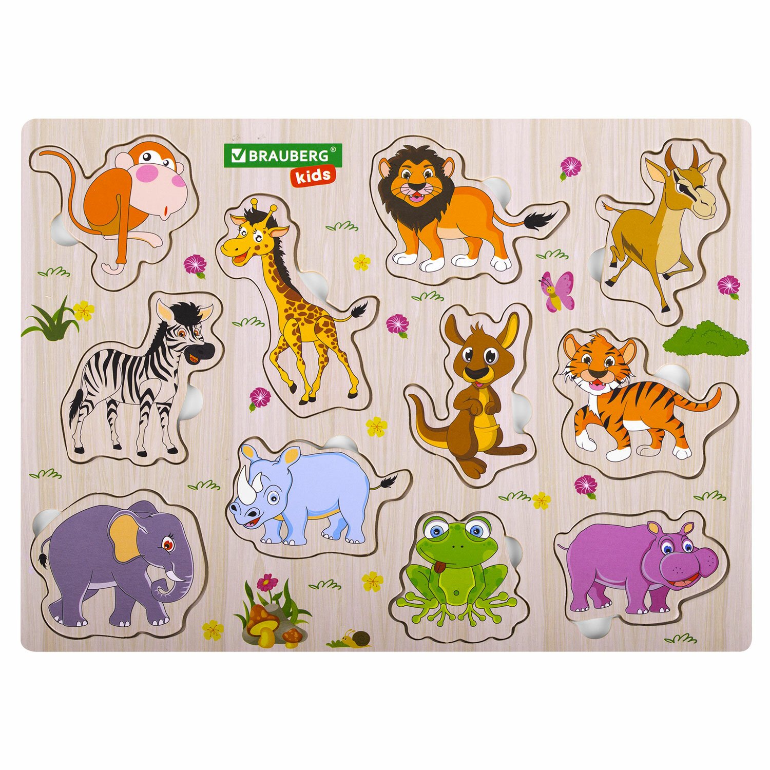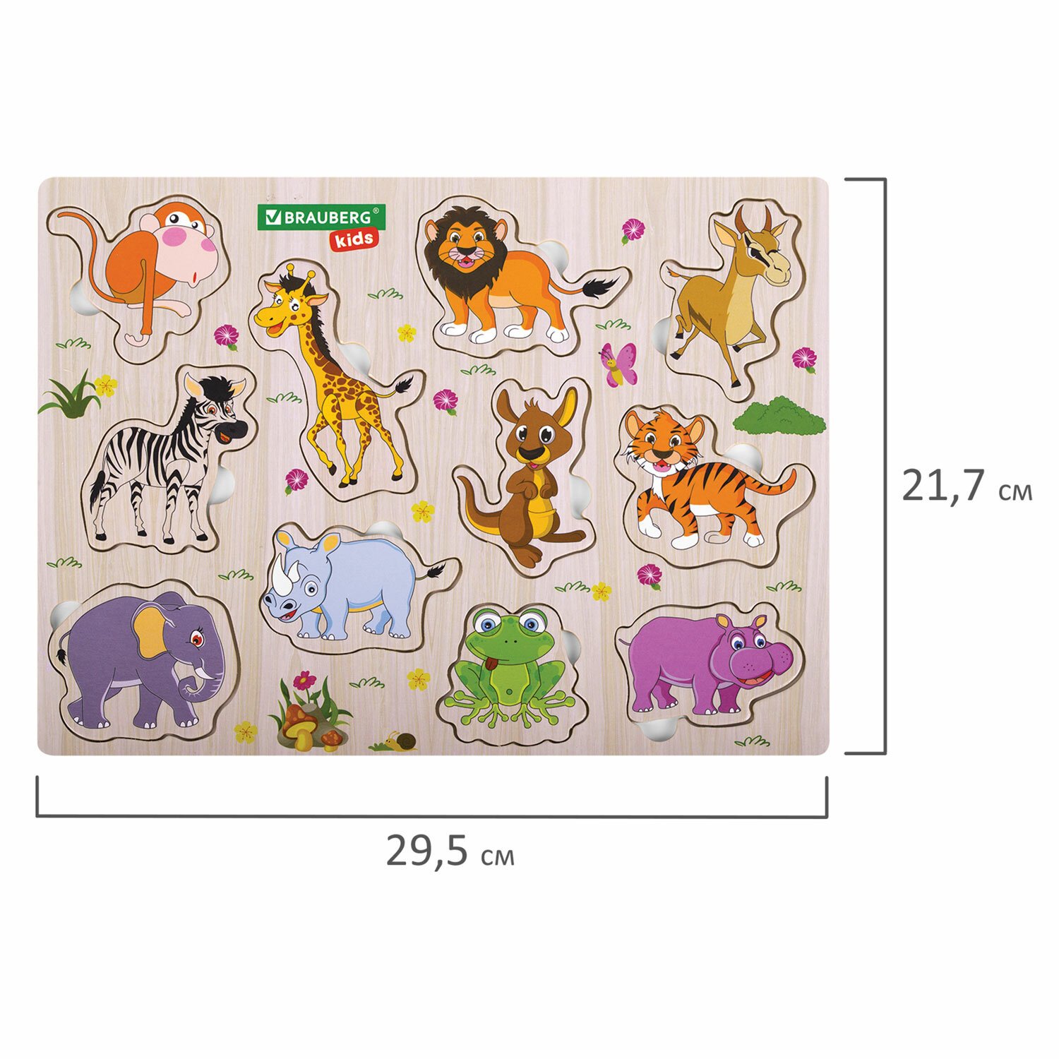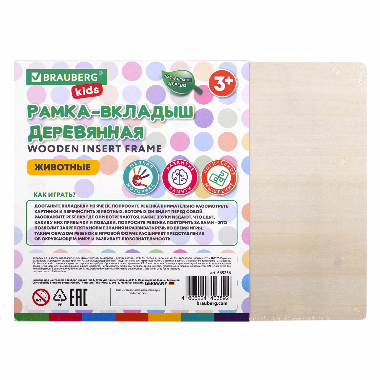 Рамка-вкладыш деревянная развивающая "Животные", 22х30 см, BRAUBERG KIDS, 665256
