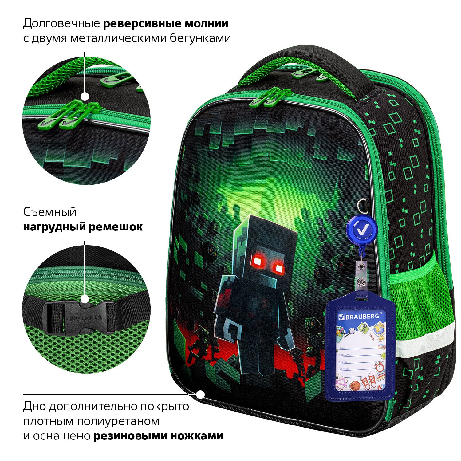 Ранец BRAUBERG FIT, 2 отделения, Night watcher, СВЕТЯЩИЙСЯ, 38х27х14 см, 273108