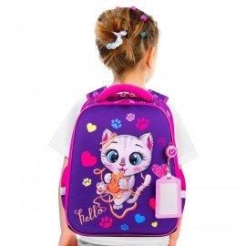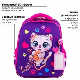 На передней панели ранца реализован уникальный 3D-эффект – выпуклое рельефное изображение котёнка! Для печати использованы яркие неоновые краски.