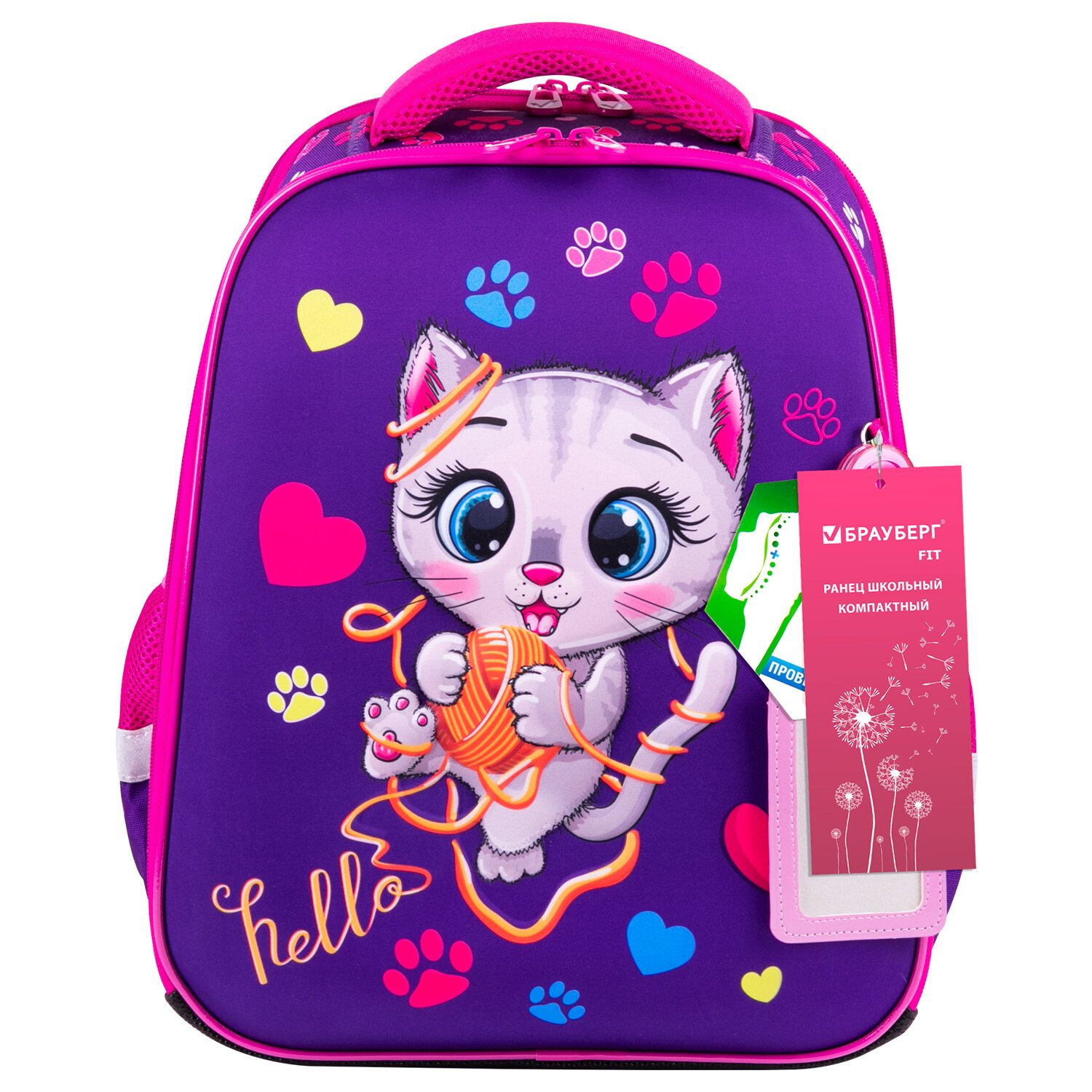 Ранец BRAUBERG FIT, 2 отделения, "Playing kitty", 3D-панель, 38х27х14 см, 270615
