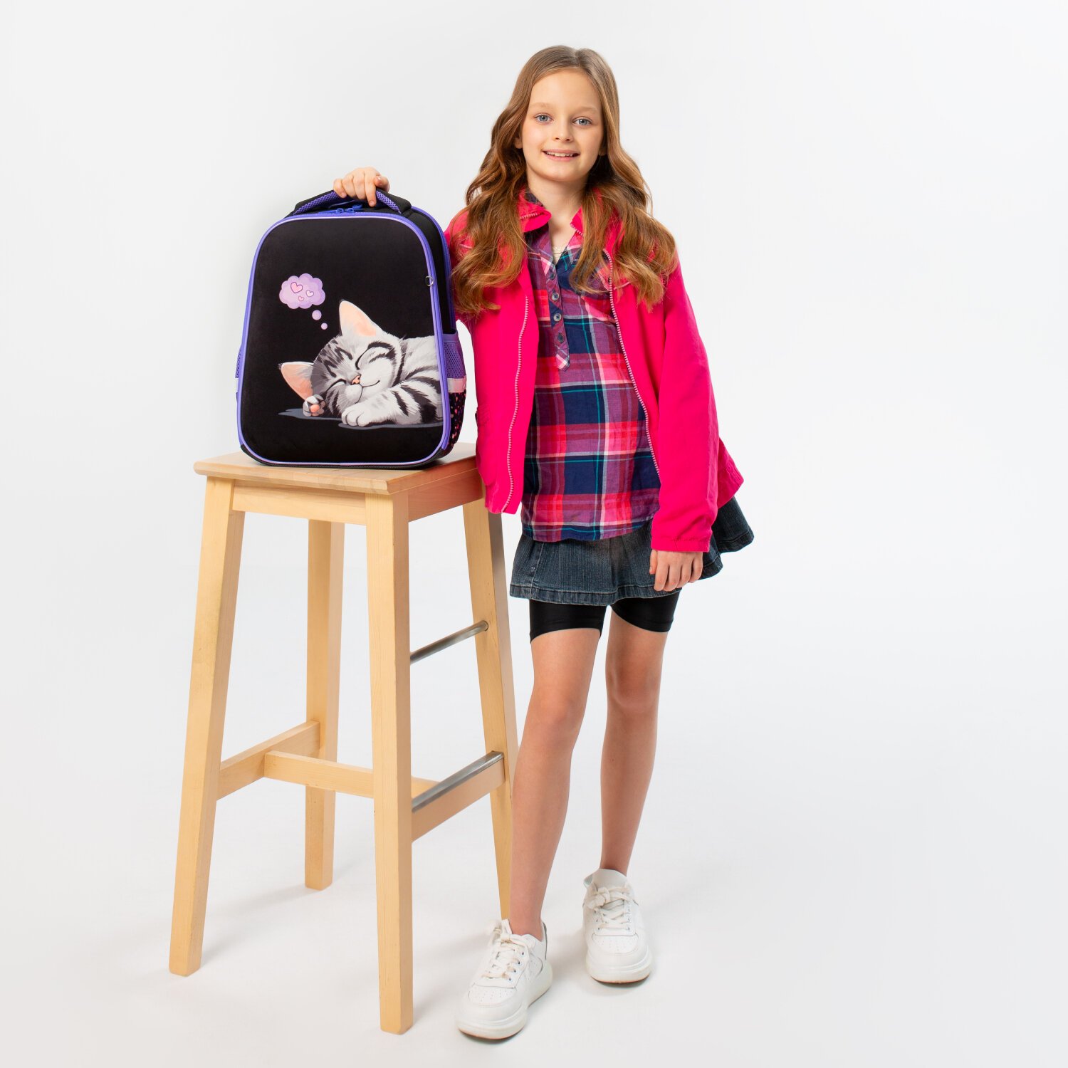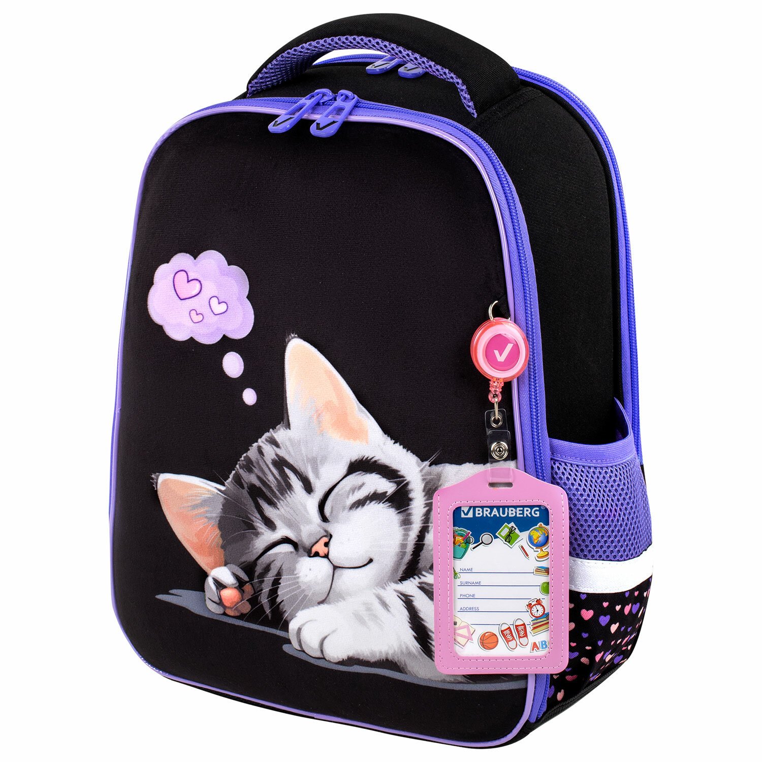 Ранец BRAUBERG FIT, 2 отделения, Sleeping kitten, велюровая панель, 38х27х14 см, 273107
