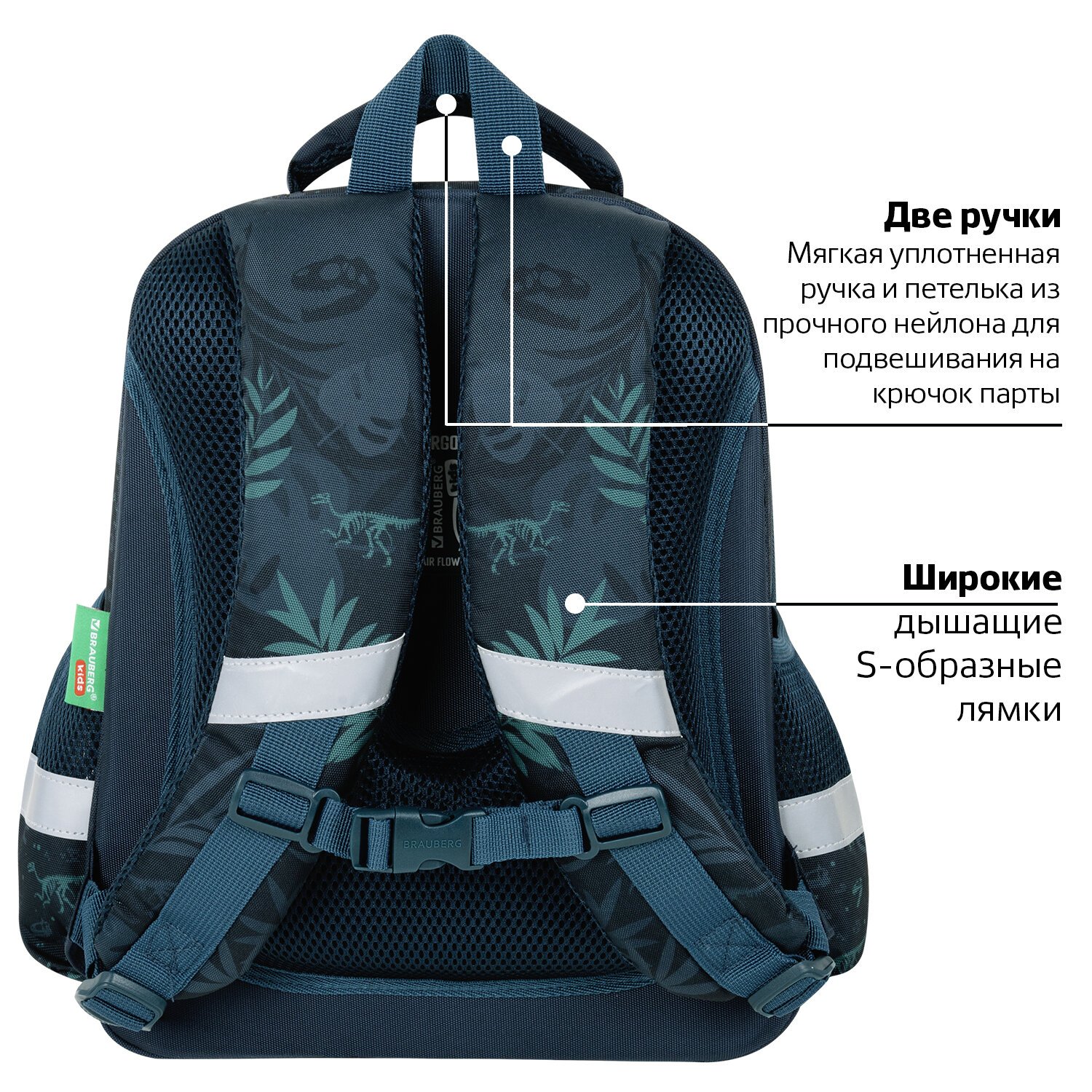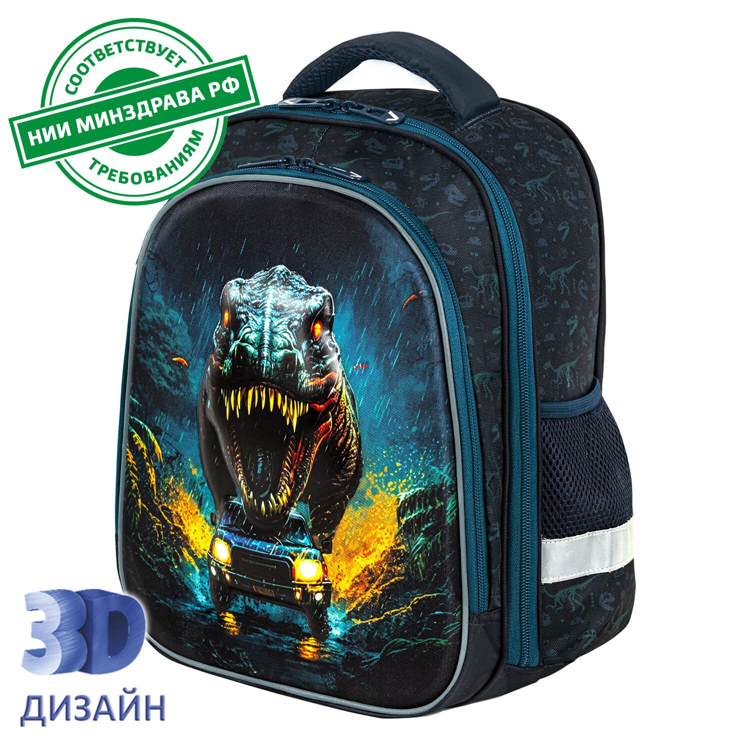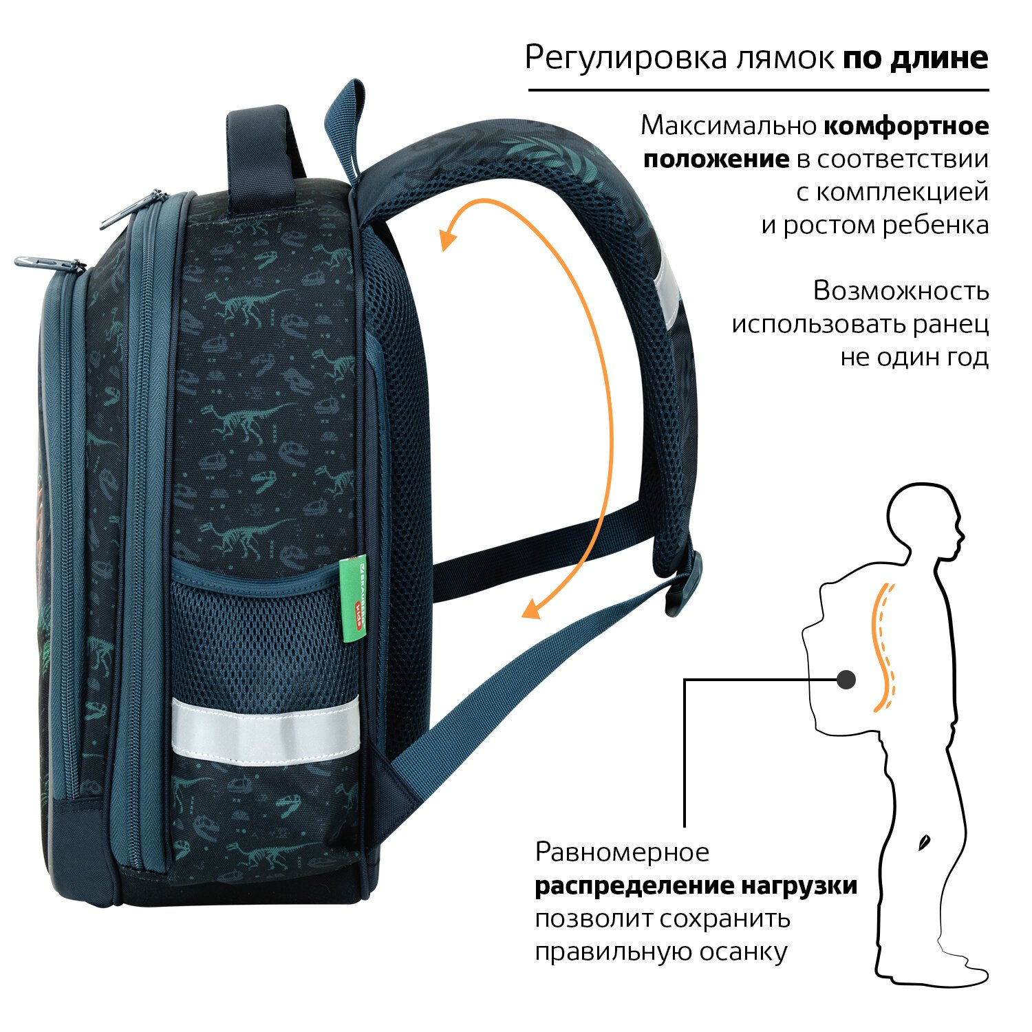 На передней панели ранца реализован уникальный 3D-эффект – выпуклое рельефное изображение динозавра!