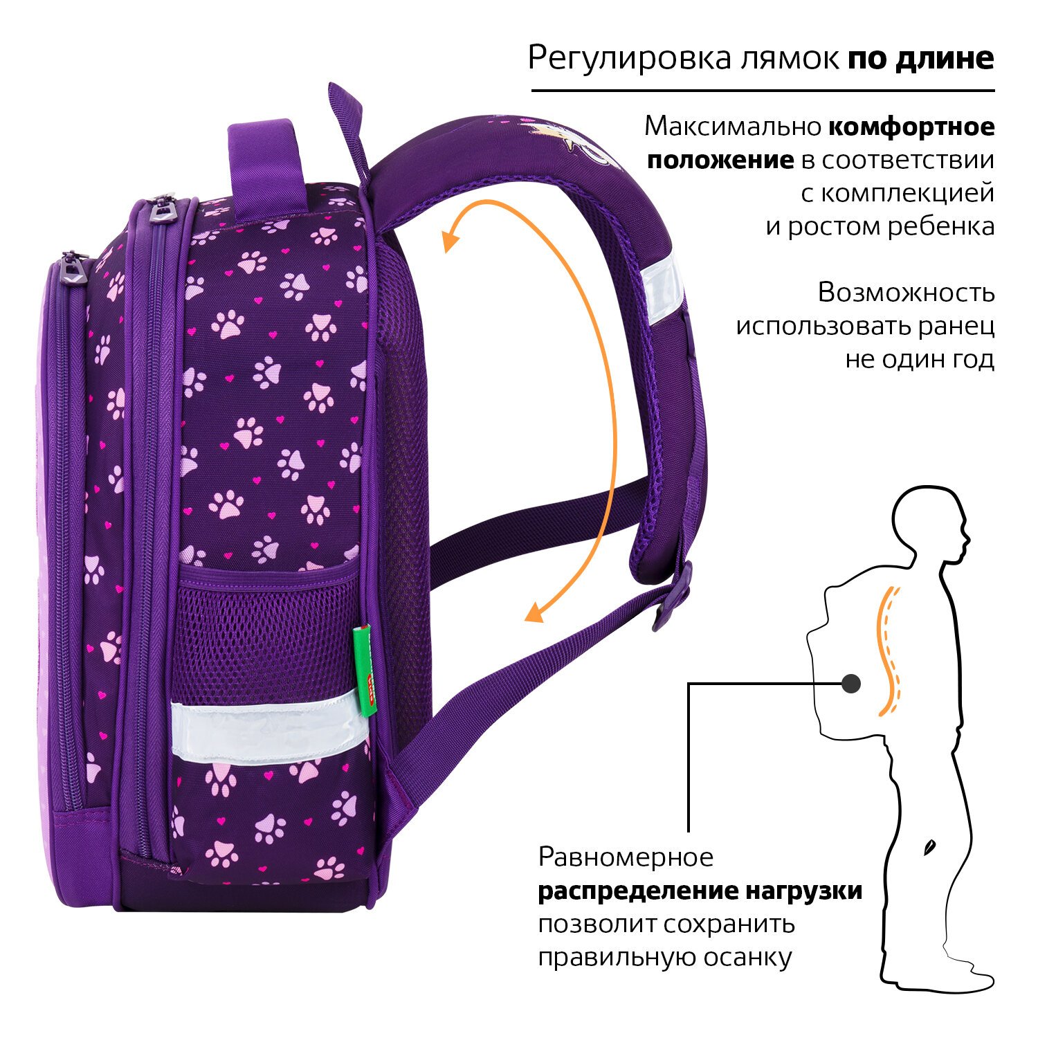 Удобная мягкая вентилируемая спинка с воздушными спонжевыми панелями разработана с учетом анатомических особенностей детей младшего школьного возраста. При правильной регулировке ранец будет практически не ощущаться на плечах и не будет доставлять дискомфорт при носке. В процессе эксплуатации равномерное распределение нагрузки позволит сохранить правильную осанку!