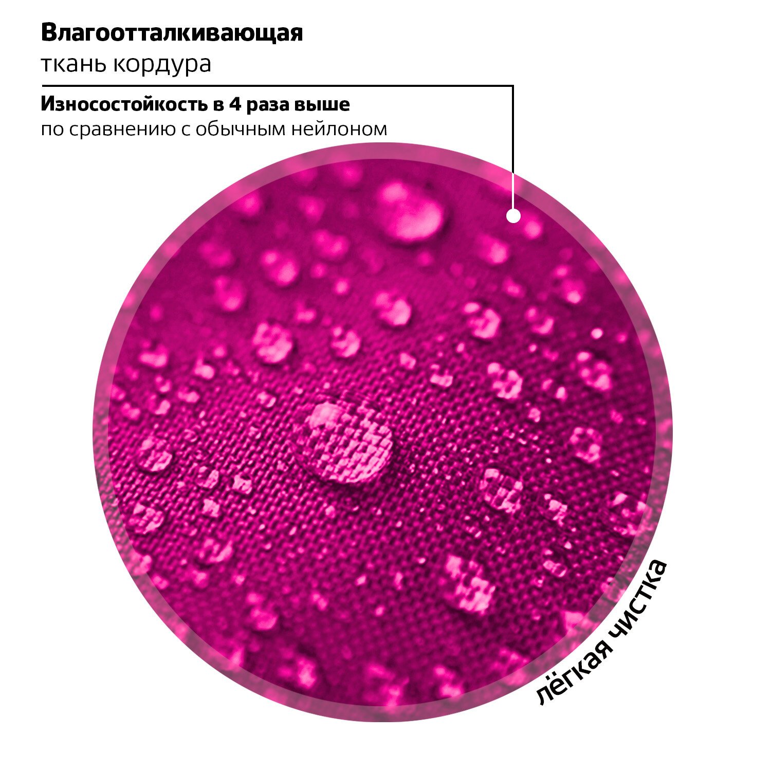 Ранец покрыт высококачественной влагоотталкивающей нейлоновой тканью кордура, в которой за счет особой структуры нити достигнута четырехкратная стойкость к истиранию по сравнению с простым нейлоном, также эта ткань легко чистится.