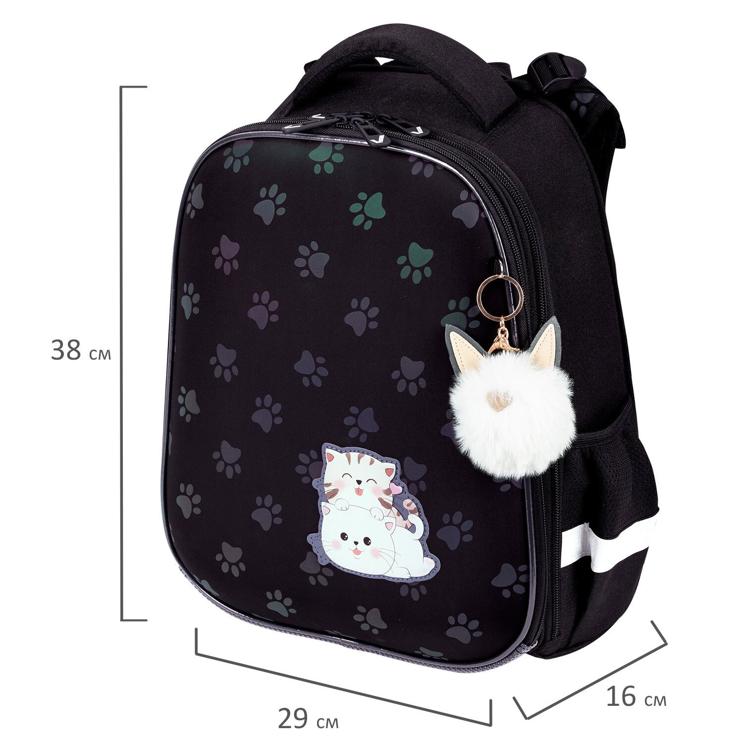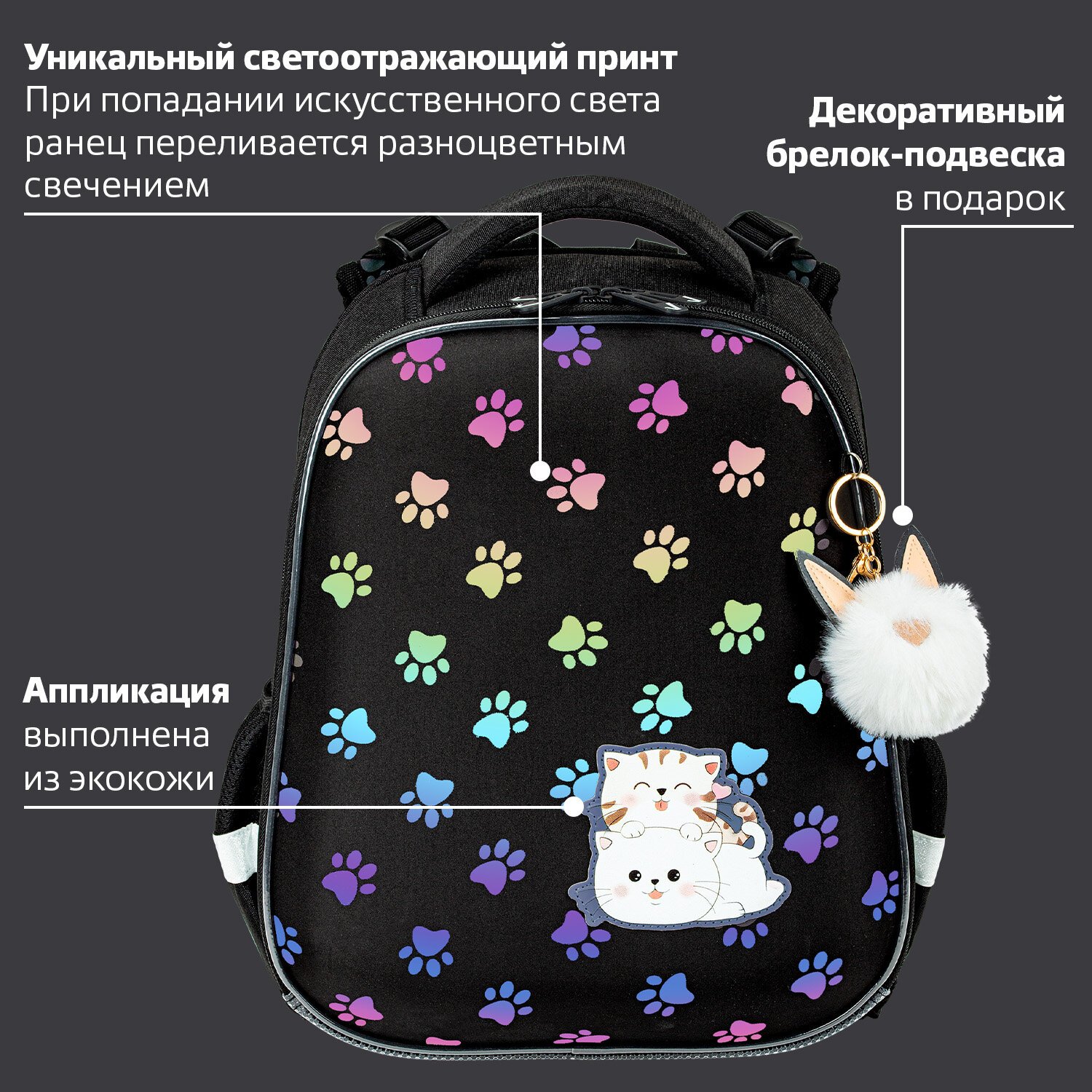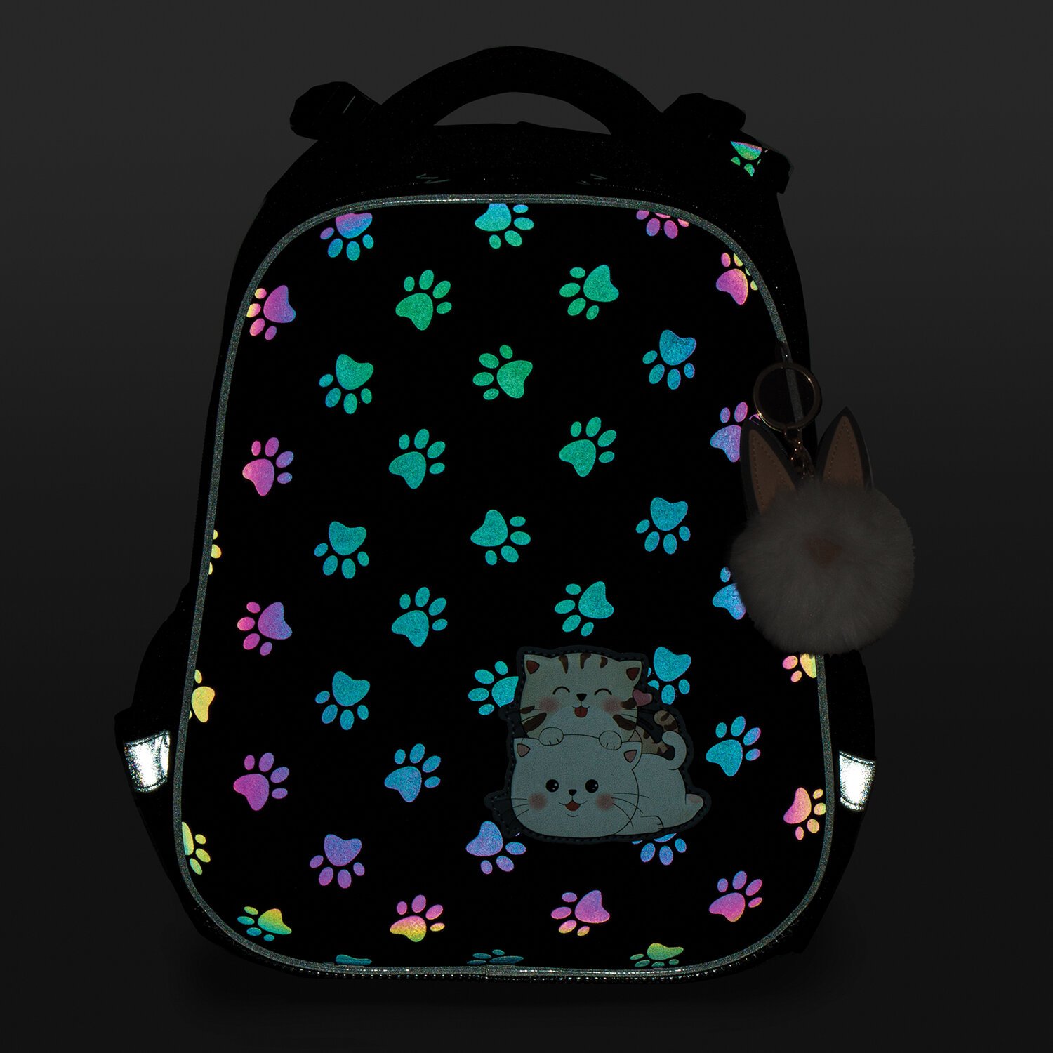 Ранец BRAUBERG LUMINOUS, 2 отделения, с брелоком, "Paws", СВЕТЯЩИЙСЯ РИСУНОК, 38х29х16 см, 271366