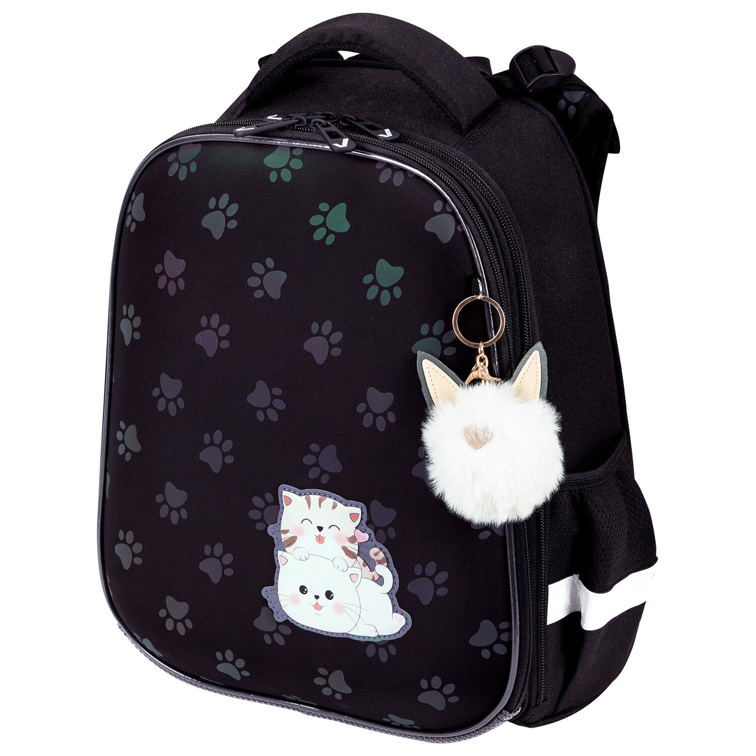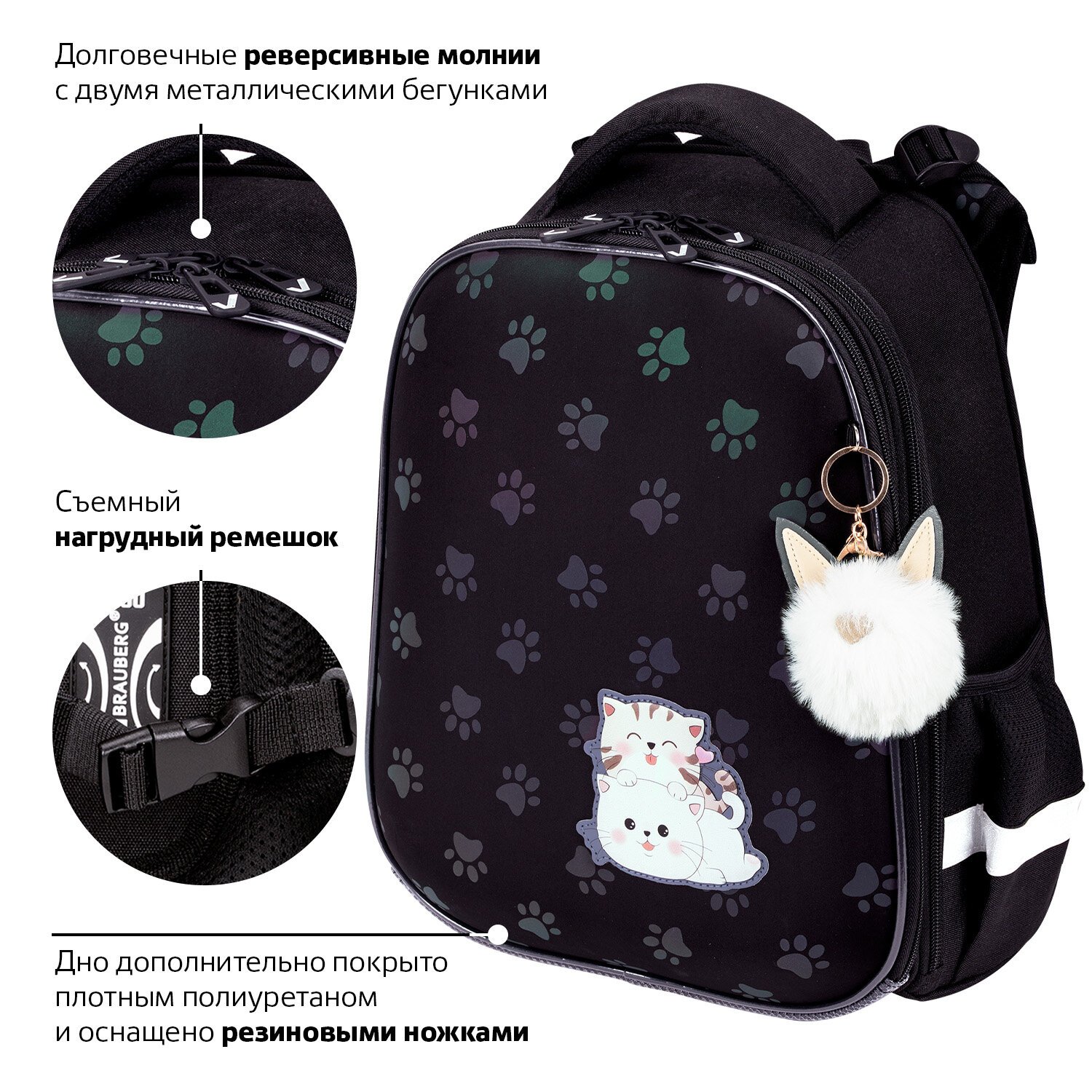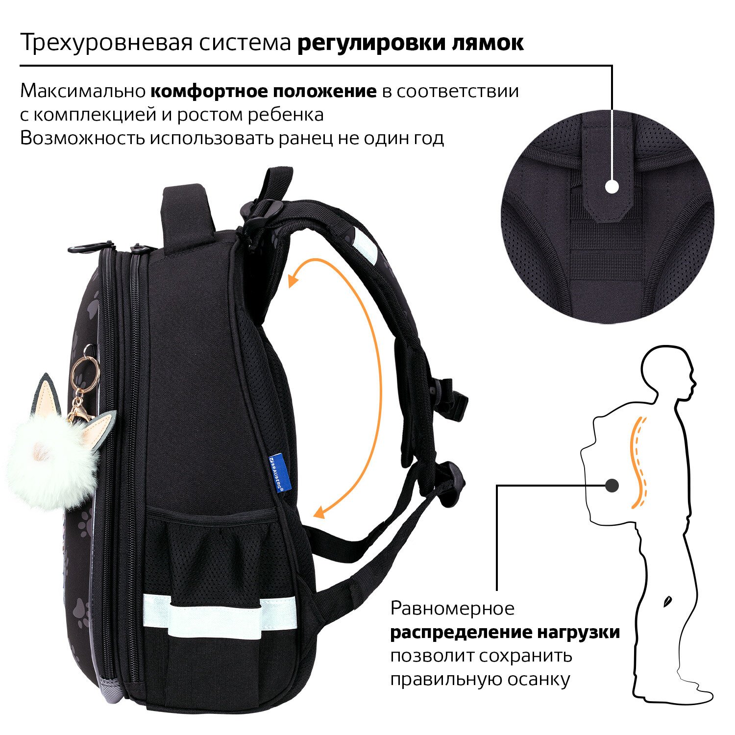 Ранец BRAUBERG LUMINOUS, 2 отделения, с брелоком, "Paws", СВЕТЯЩИЙСЯ РИСУНОК, 38х29х16 см, 271366