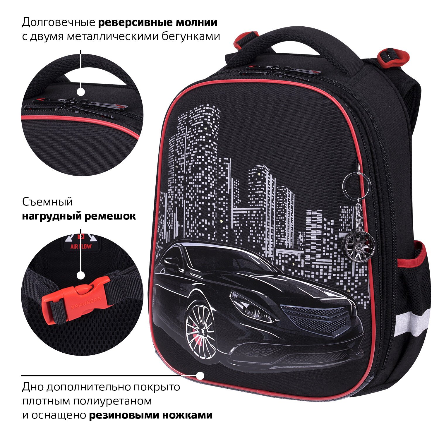 Ранец BRAUBERG PREMIUM, 2 отделения, с брелком, "Fast car", 38х29х16 см, 270600