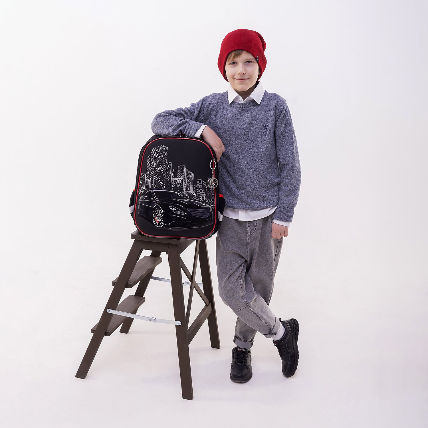 Ранец BRAUBERG PREMIUM, 2 отделения, с брелоком, "Foggy car", 3D-панель, 38х29х16 см, 273103