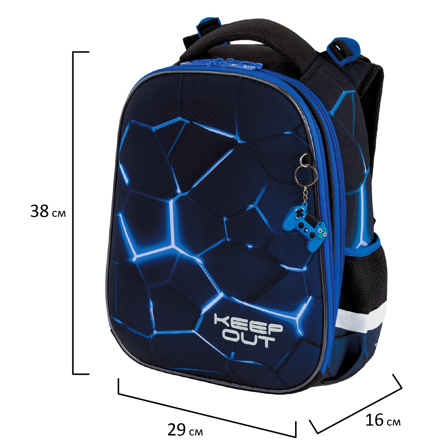 Надпись на передней панели светится в темноте! Светящийся эффект реализован с помощью современной и технологичной печати на ткани специальной краской. Эффект свечения достигается за счёт накопления дневного или искусственного света. В сочетании с оригинальным брелоком-подвеской ранец выглядит очень стильно.