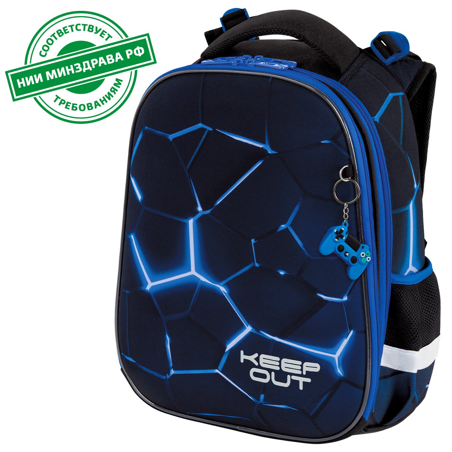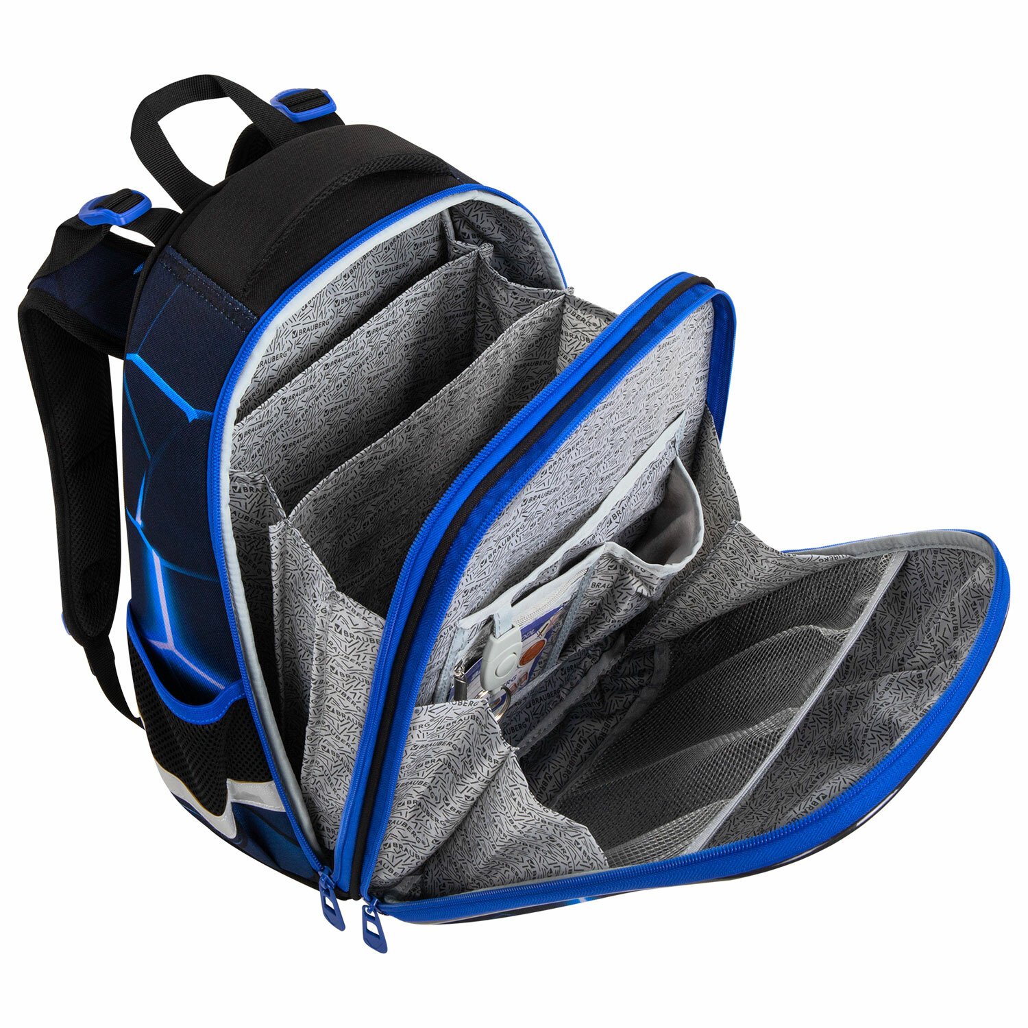 В основном отделении ранца можно легко и быстро разместить учебники и тетради. Внутри фронтального отделения находится органайзер для канцтоваров, именная карточка, карман для телефона, съёмный карабин для ключей и большое отделение из сетки. Такая организация пространства поможет держать принадлежности в сохранности и приучить ребенка к порядку. Ранец широко раскрывается, повышая удобство использования, а за счёт боковых перегородок содержимое не выскользнет из ранца.