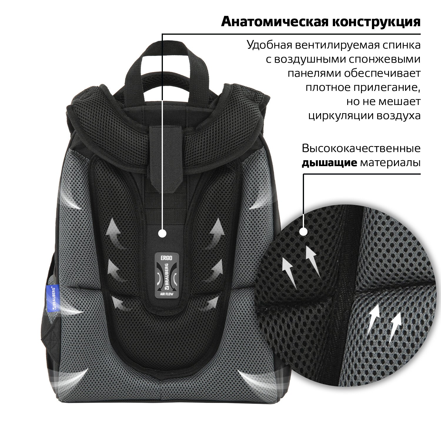 Удобная мягкая вентилируемая спинка с воздушными спонжевыми панелями разработана с учетом анатомических особенностей детей младшего школьного возраста. При правильной регулировке ранец будет практически не ощущаться на плечах и не будет доставлять дискомфорт при носке. В процессе эксплуатации равномерное распределение нагрузки позволит сохранить правильную осанку!