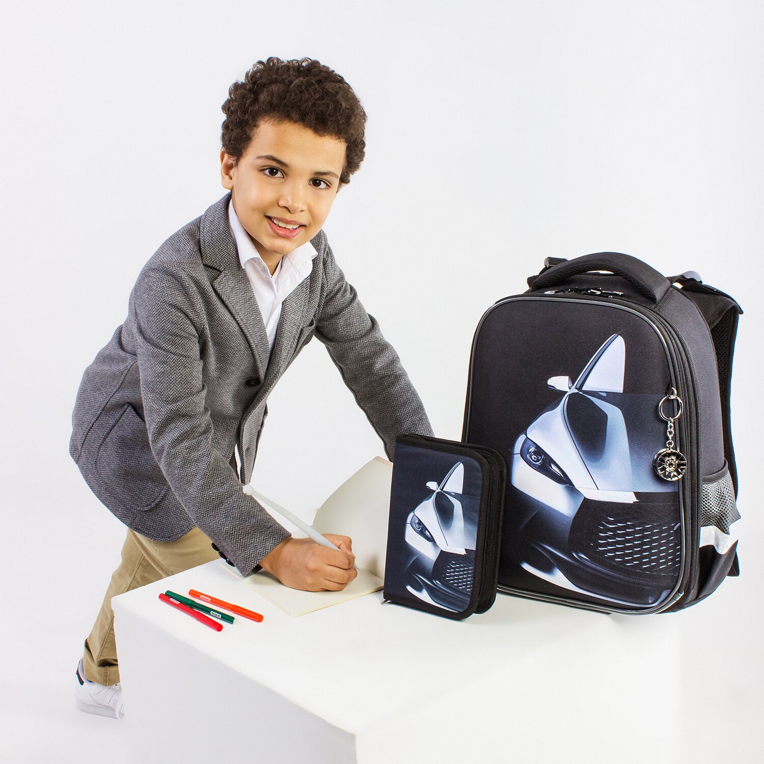 Ранец BRAUBERG PREMIUM, 2 отделения, с брелоком, "Foggy car", 3D-панель, 38х29х16 см, 273103