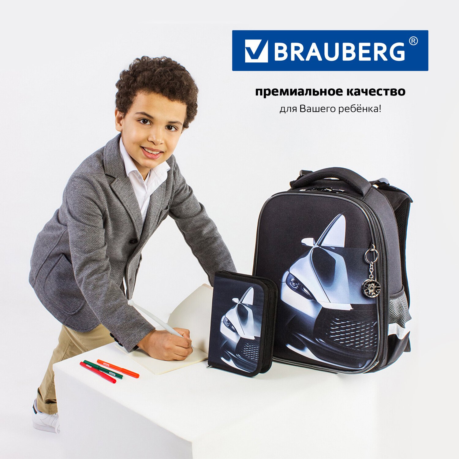 Ранец BRAUBERG PREMIUM, 2 отделения, с брелком, "Fast car", 38х29х16 см, 270600