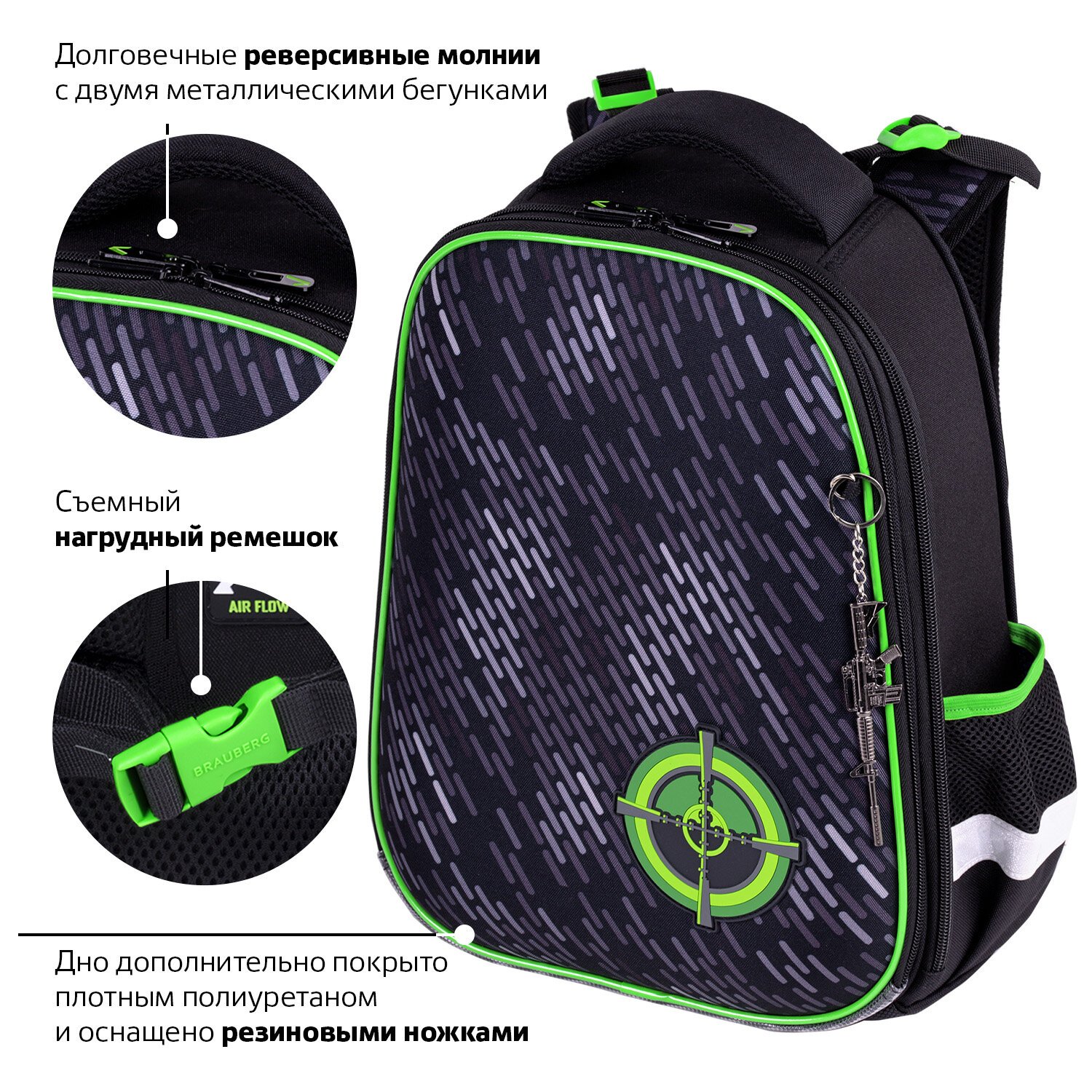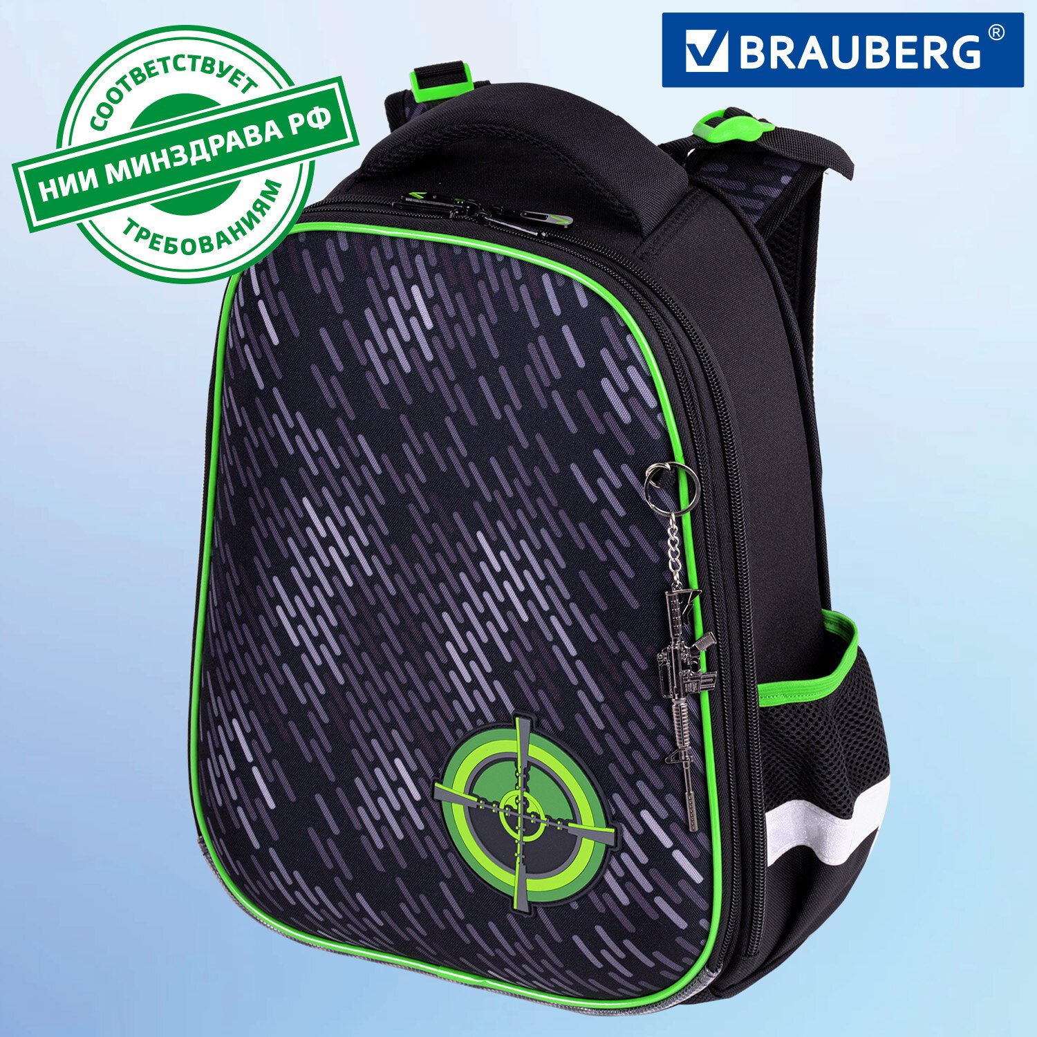Ранец BRAUBERG PREMIUM, 2 отделения, с брелком, "Gunsight", 38х29х16 см, 271357