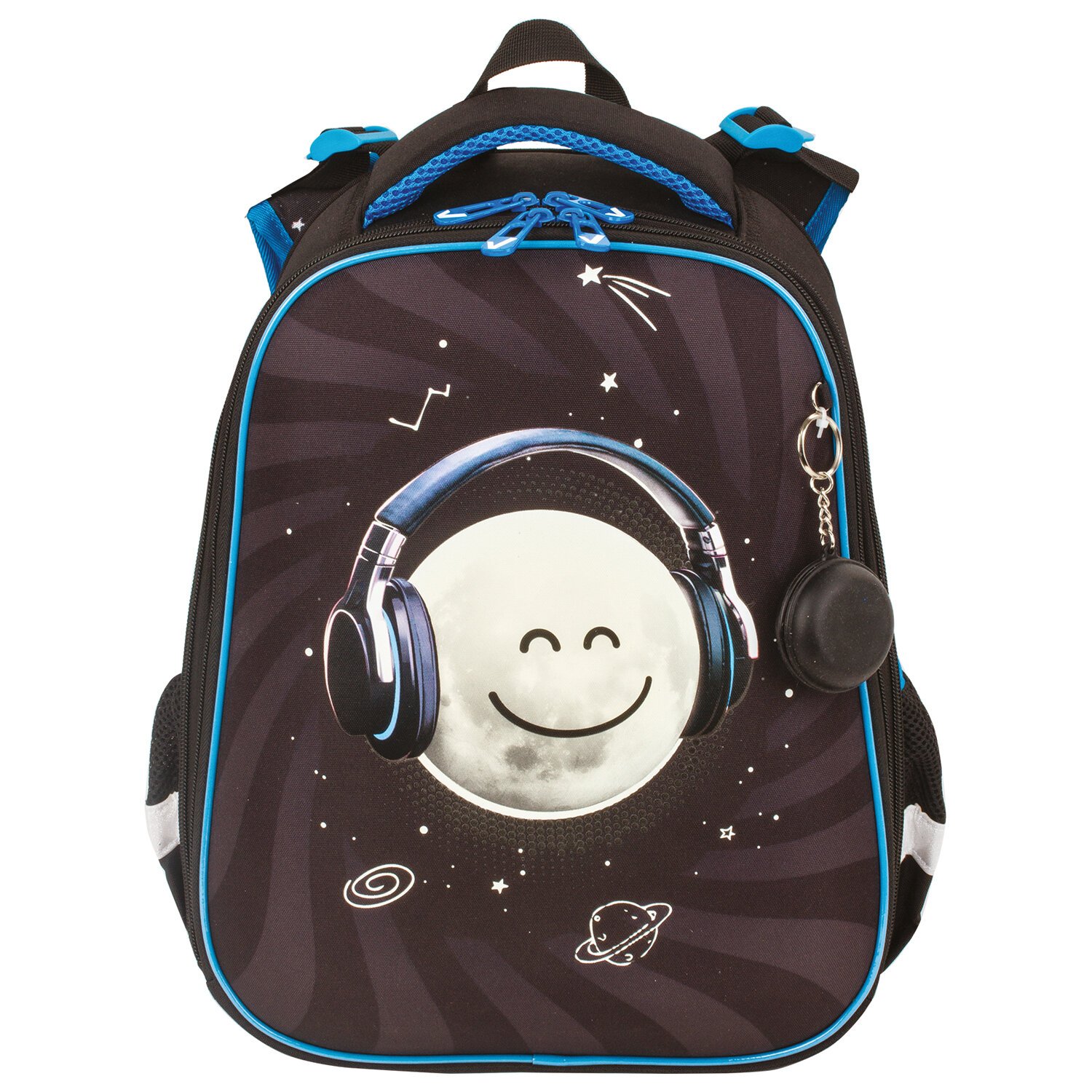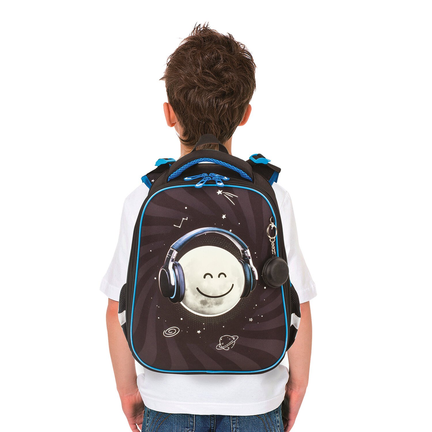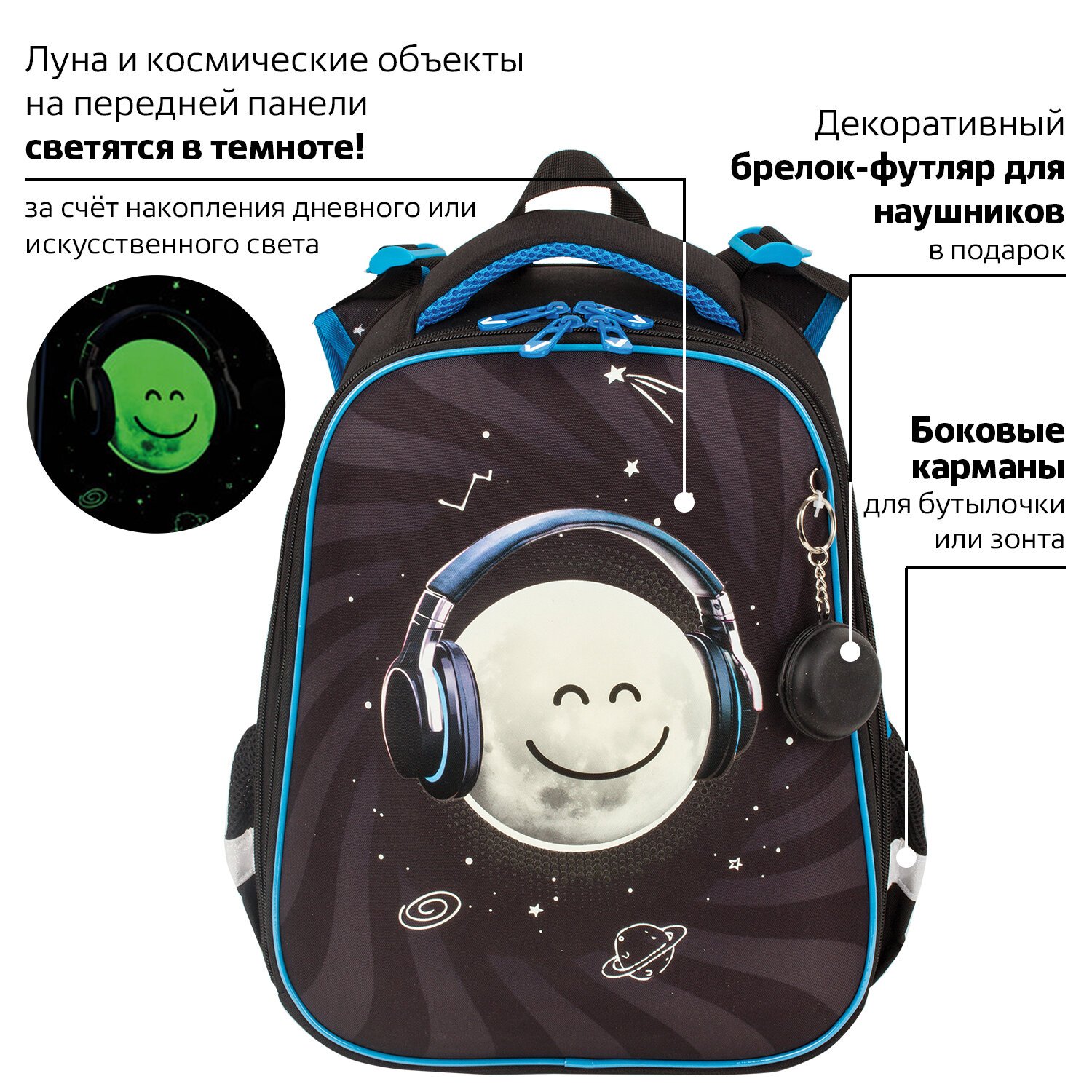 Ранец BRAUBERG PREMIUM, 2 отделения, с брелком, "Moon", СВЕТЯЩИЙСЯ, 38х29х16 см, 229905