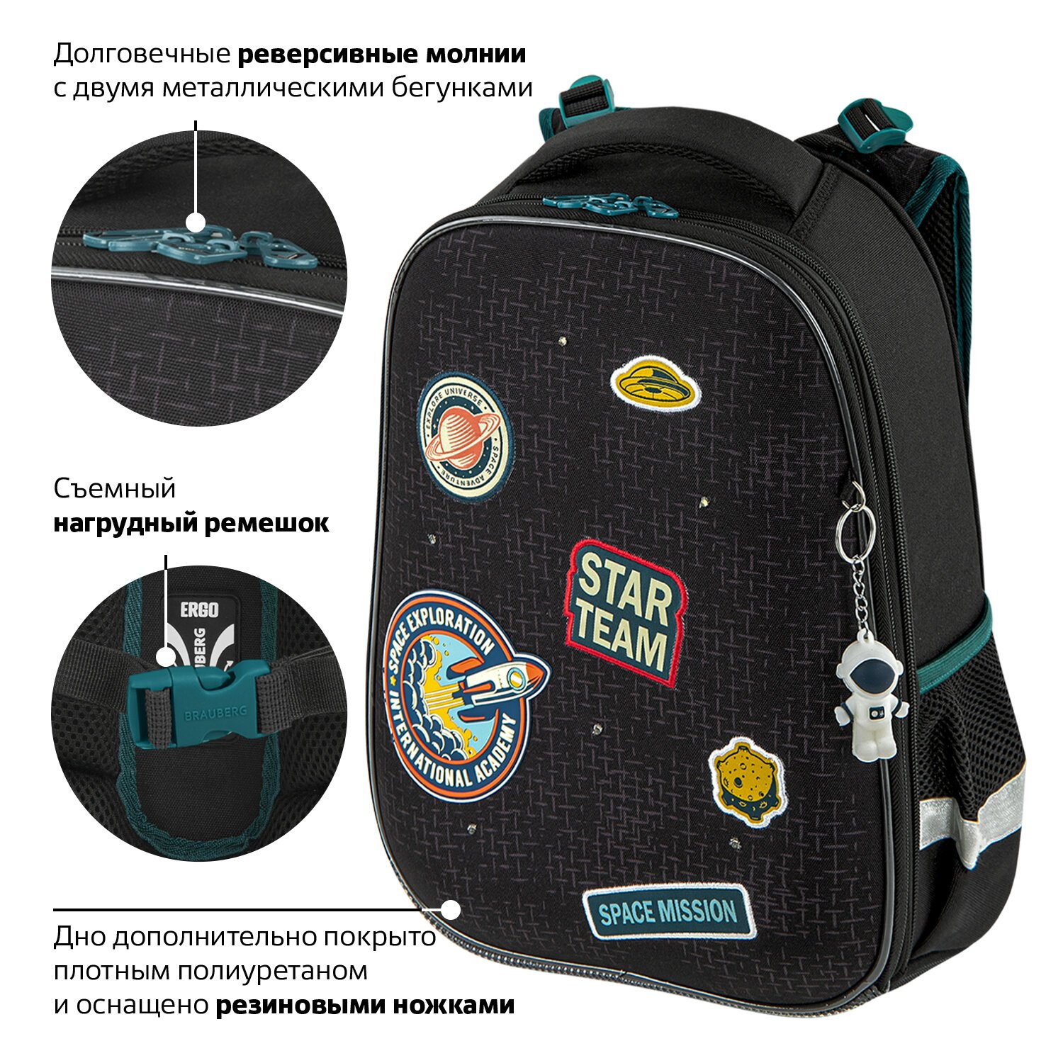 Ранец BRAUBERG серии PREMIUM самой популярной капсульной формы среди ранцев. Изготовлен из легкого, формоустойчивого, экологичного материала EVA с качественной и яркой печатью и различными эффектами. В комплекте с ранцем поставляется брелок-подвеска.