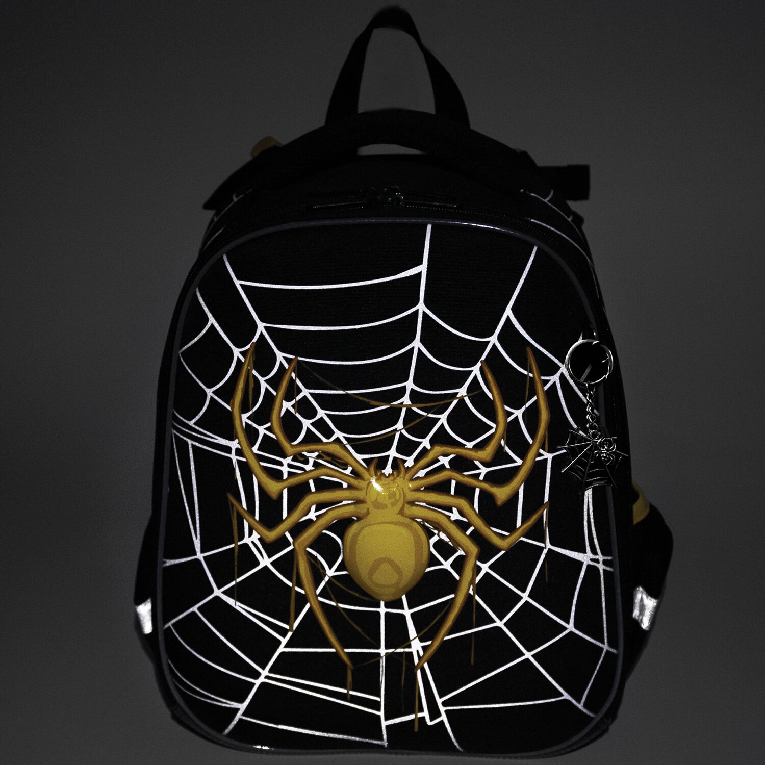 На передней панели ранца реализован уникальный 3D-эффект - выпуклое рельефное изображение паука! Паутина выполнена с помощью высококачественной печати специальной светоотражающей краской. Сочетание контрастных цветов привлекает внимание к дизайну, а оригинальный брелок дополняет дизайн ранца.