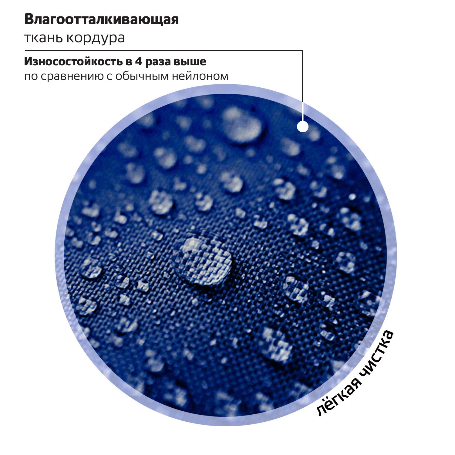 Ранец покрыт высококачественной влагоотталкивающей нейлоновой тканью – кордура, в которой за счёт особой структуры нити достигнута четырёхкратная стойкость к истиранию по сравнению с простым нейлоном, также эта ткань легко чистится.