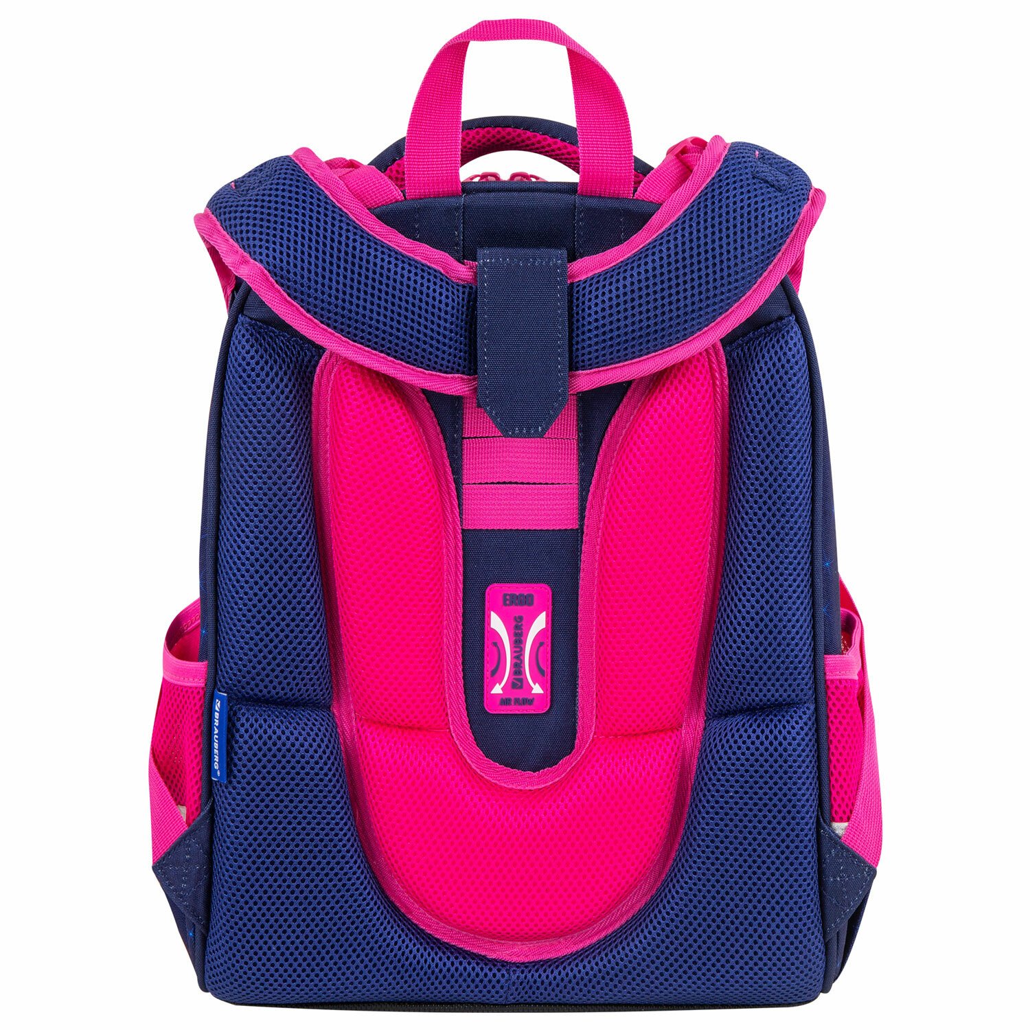 Удобная мягкая вентилируемая спинка с воздушными спонжевыми панелями разработана с учетом анатомических особенностей детей младшего школьного возраста. При правильной регулировке ранец будет практически не ощущаться на плечах и не будет доставлять дискомфорт при носке. В процессе эксплуатации равномерное распределение нагрузки позволит сохранить правильную осанку!