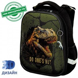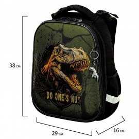 На передней панели ранца реализован уникальный 3D-эффект – выпуклое рельефное изображение динозавра! Сдержанная цветовая гамма делает рисунок реалистичным, а подвижный брелок-динозавр дополняет дизайн ранца.