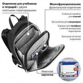 Ранец BRAUBERG PREMIUM, 2 отделения, с брелком, UFO, 38х29х16 см, 227815