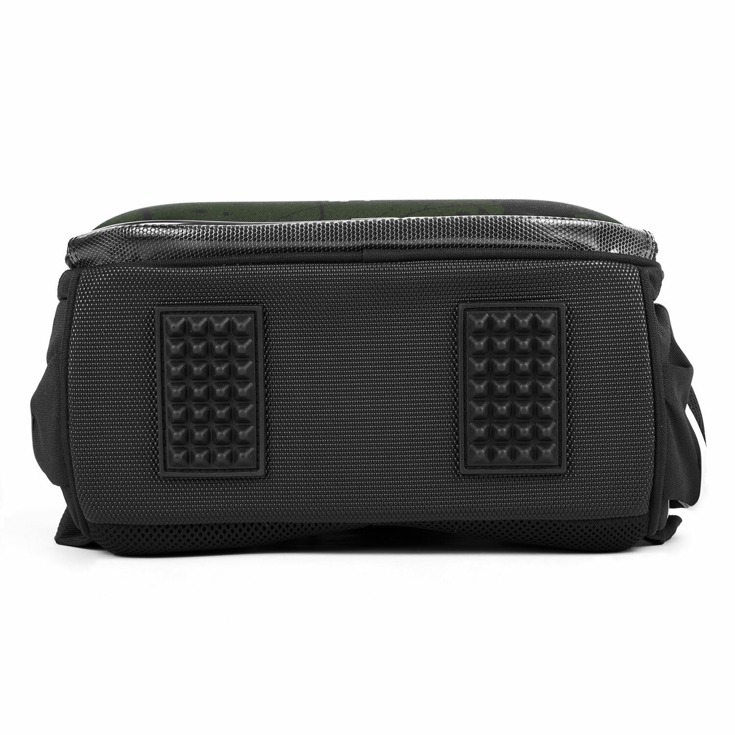 Дно ранца покрыто плотным полиуретаном для защиты от попадания влаги. Дополнительно имеются резиновые ножки для устойчивости и защиты от загрязнений.