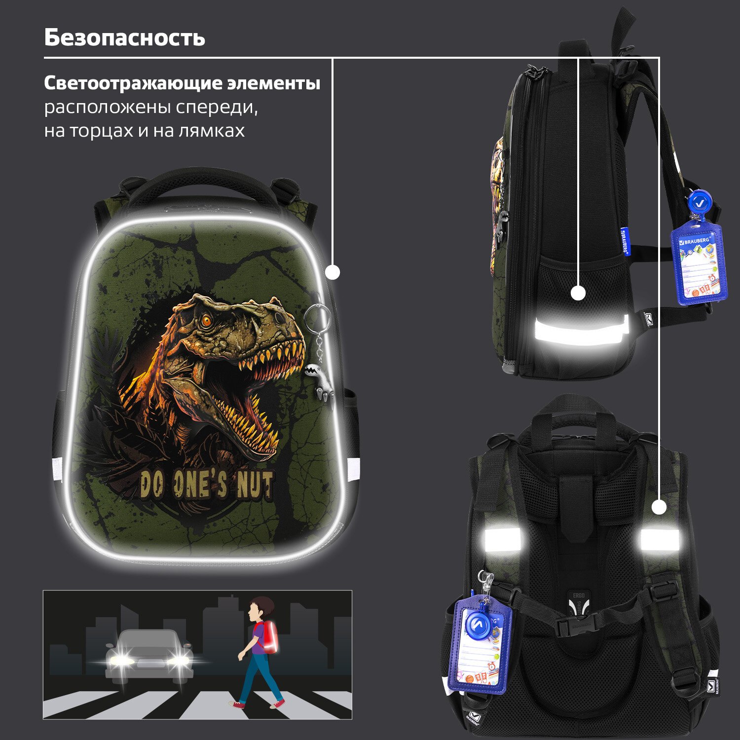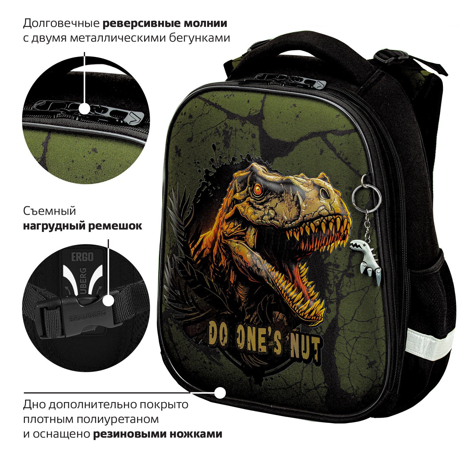 Ранец BRAUBERG PREMIUM, 2 отделения, с брелоком, "Dino attack", 3D-панель, 38х29х16 см, 272016