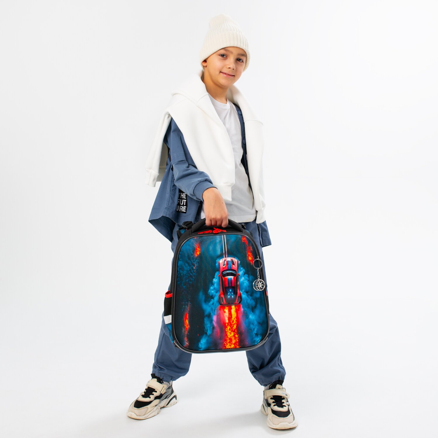 На передней панели ранца реализован уникальный 3D-эффект – выпуклое рельефное изображение спортивной машины! Сочетание ярких контрастных цветов привлекает внимание, а оригинальный брелок дополняет дизайн ранца.