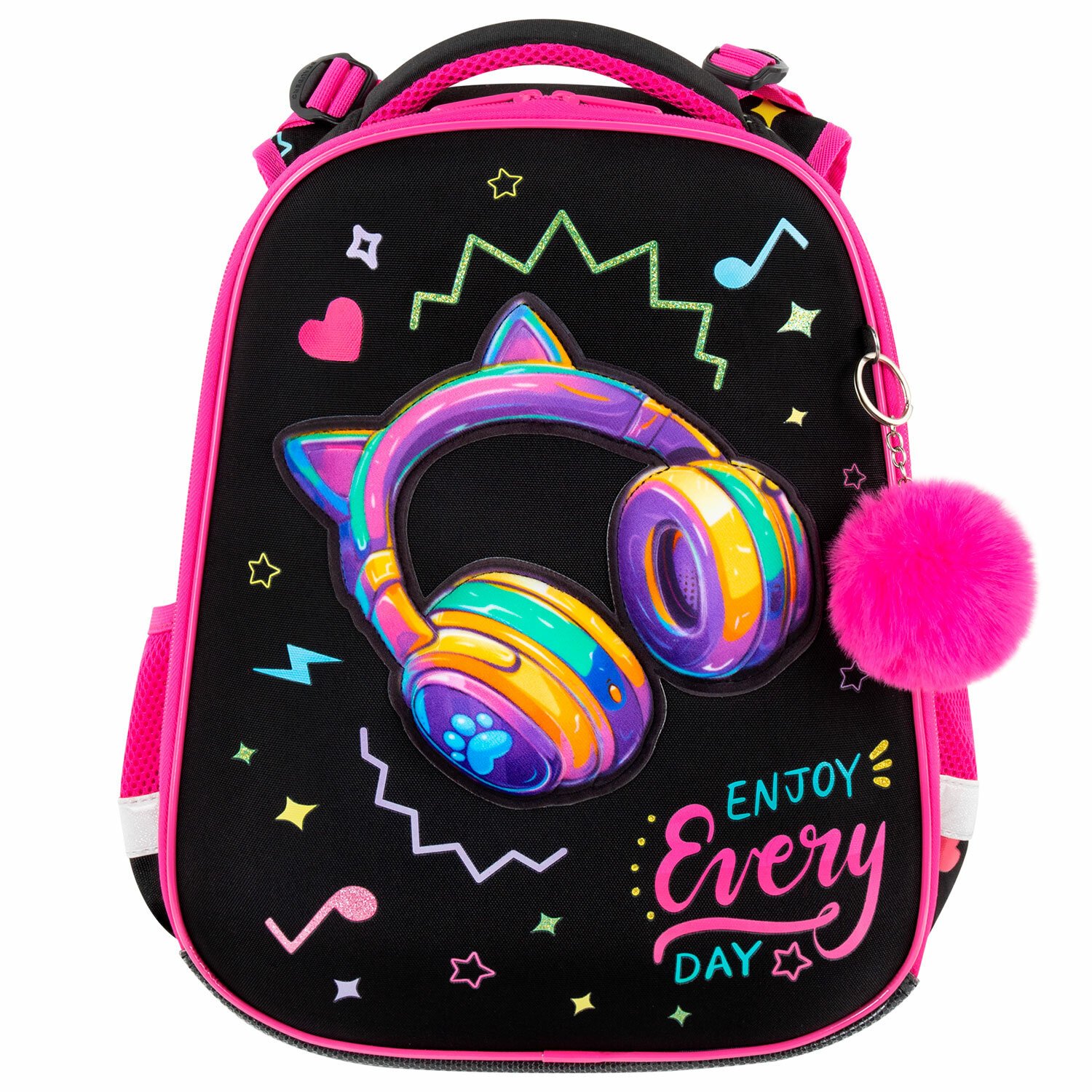 Ранец BRAUBERG PREMIUM, 2 отделения, с брелоком, "Headphones", велюровая нашивка, 38х29х16 см, 273100