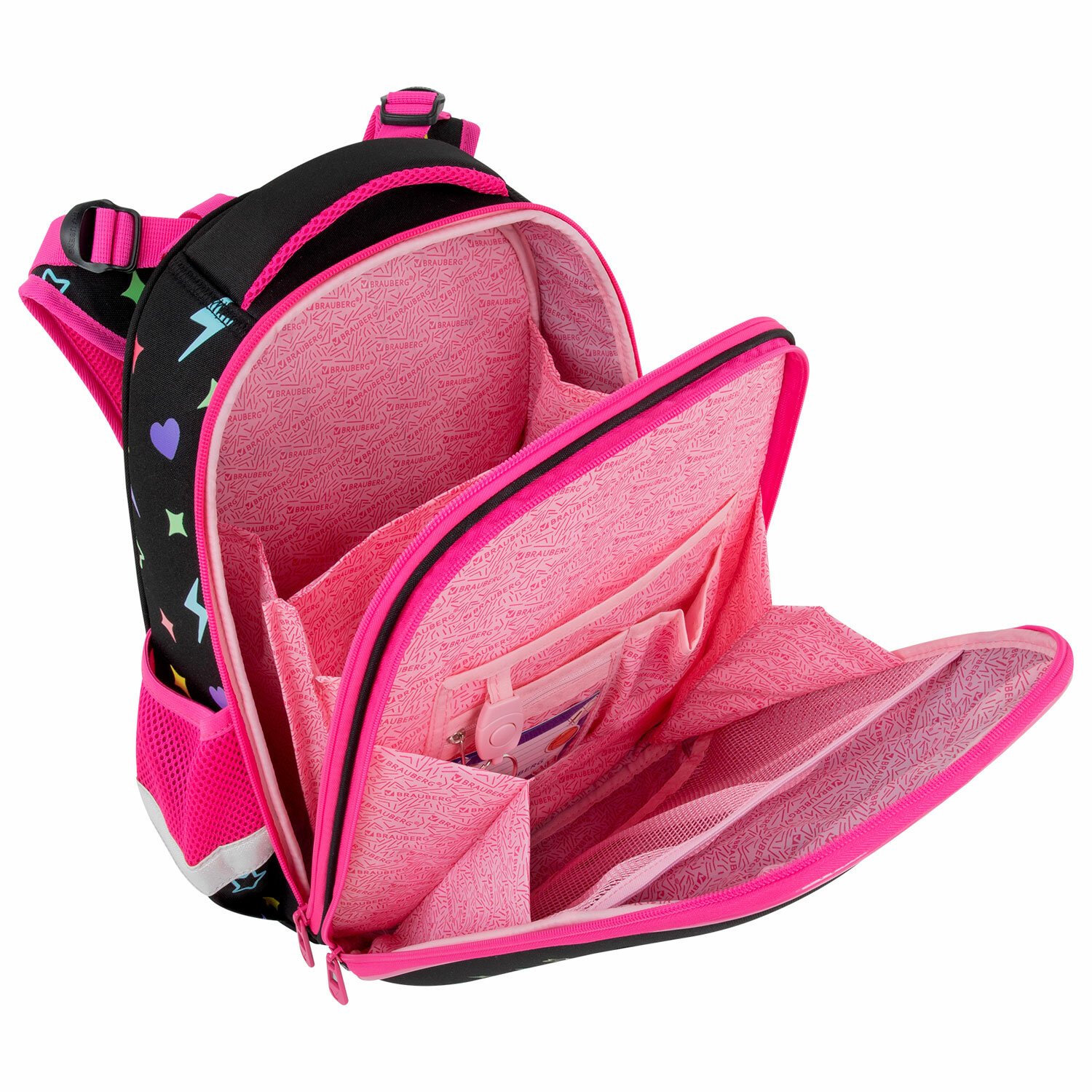 Дизайн передней панели дополнен объемной велюровой аппликацией, печатью блестками и яркими неоновыми красками! Пушистый брелок-подвеска дополняет дизайн ранца.