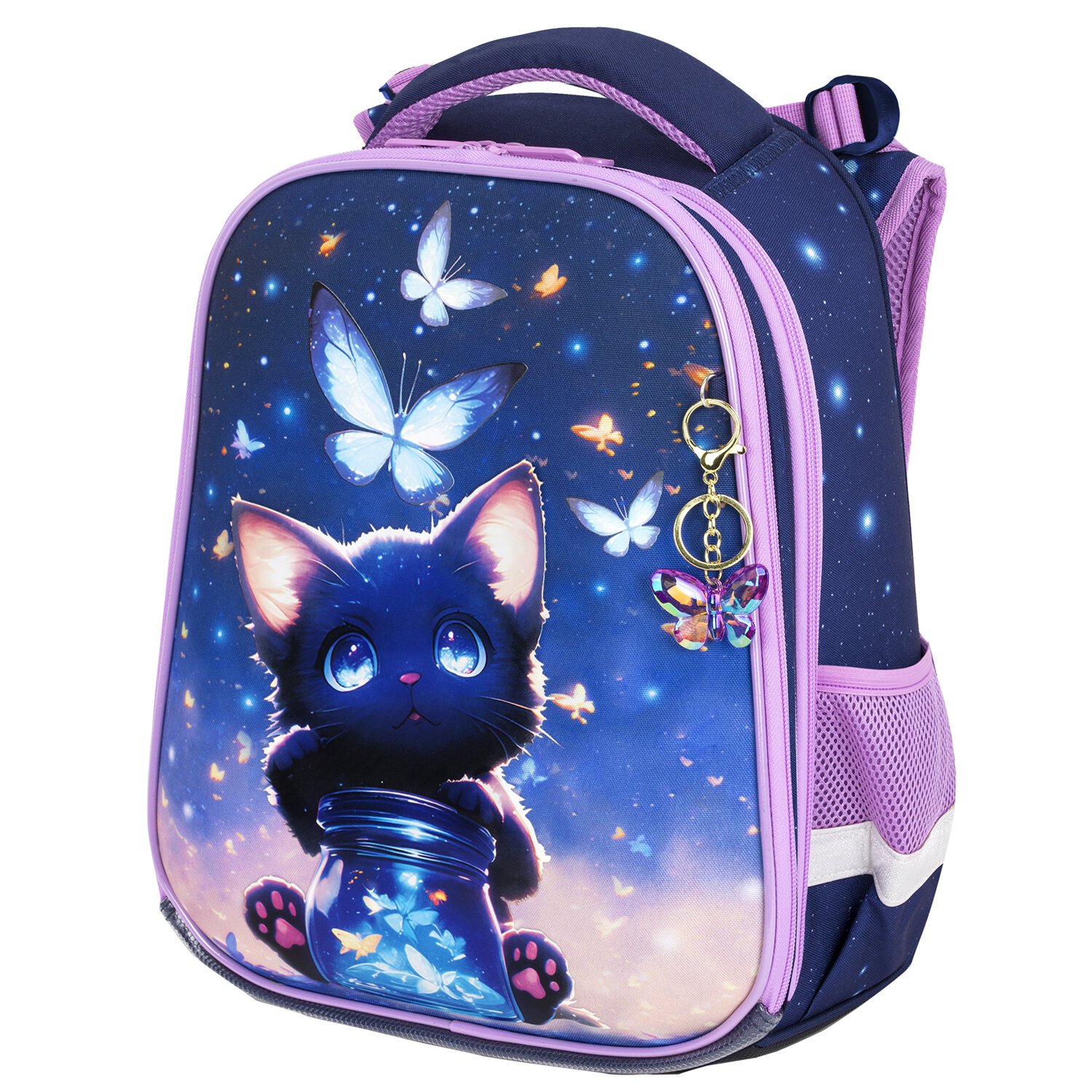 Ранец BRAUBERG PREMIUM, 2 отделения, с брелком, "Neon cat", 38х29х16 см, 271352