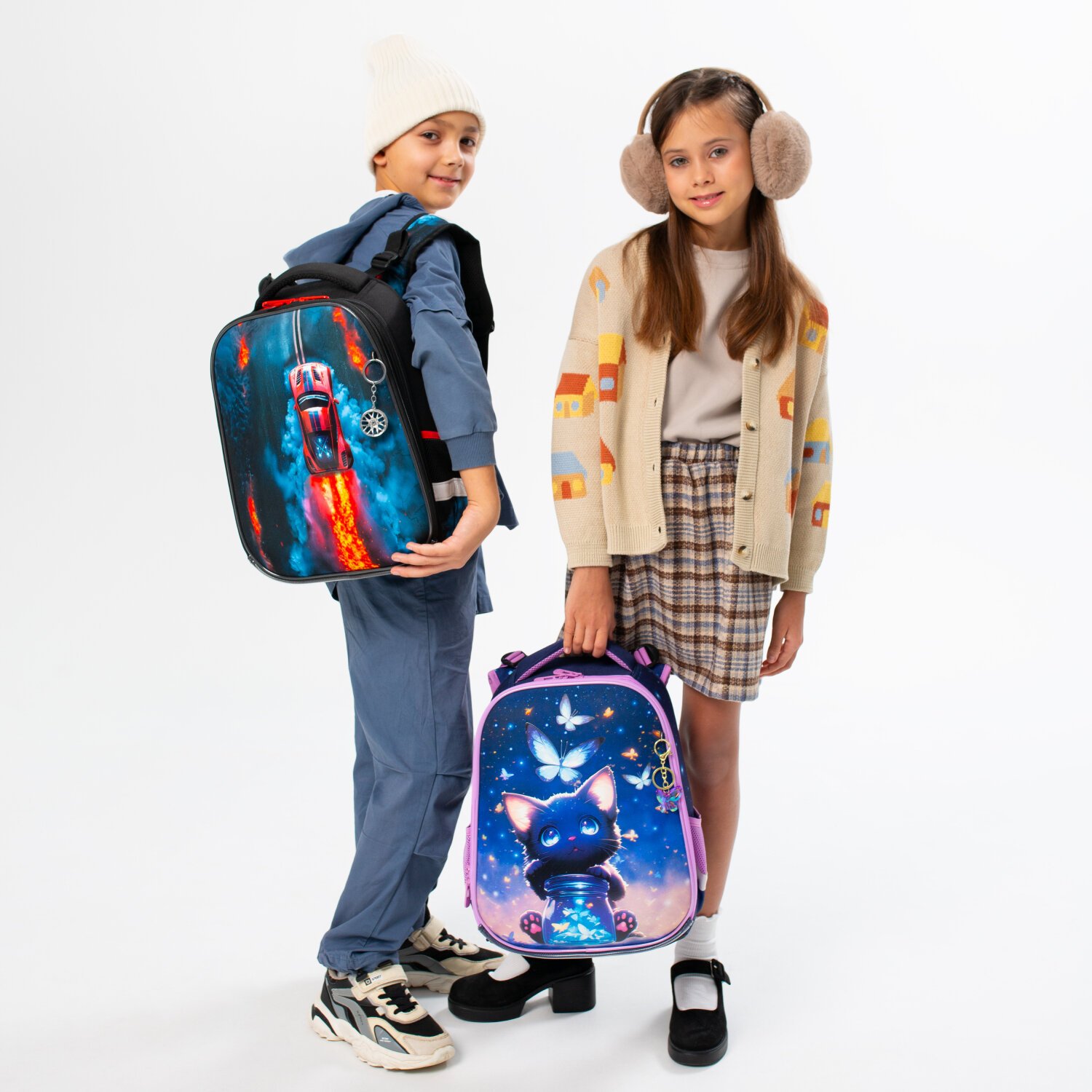 Ранец BRAUBERG PREMIUM, 2 отделения, с брелоком, "Foggy car", 3D-панель, 38х29х16 см, 273103