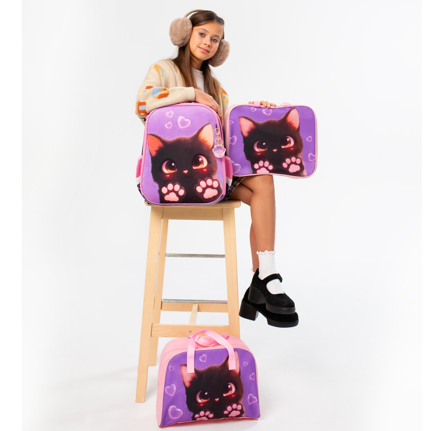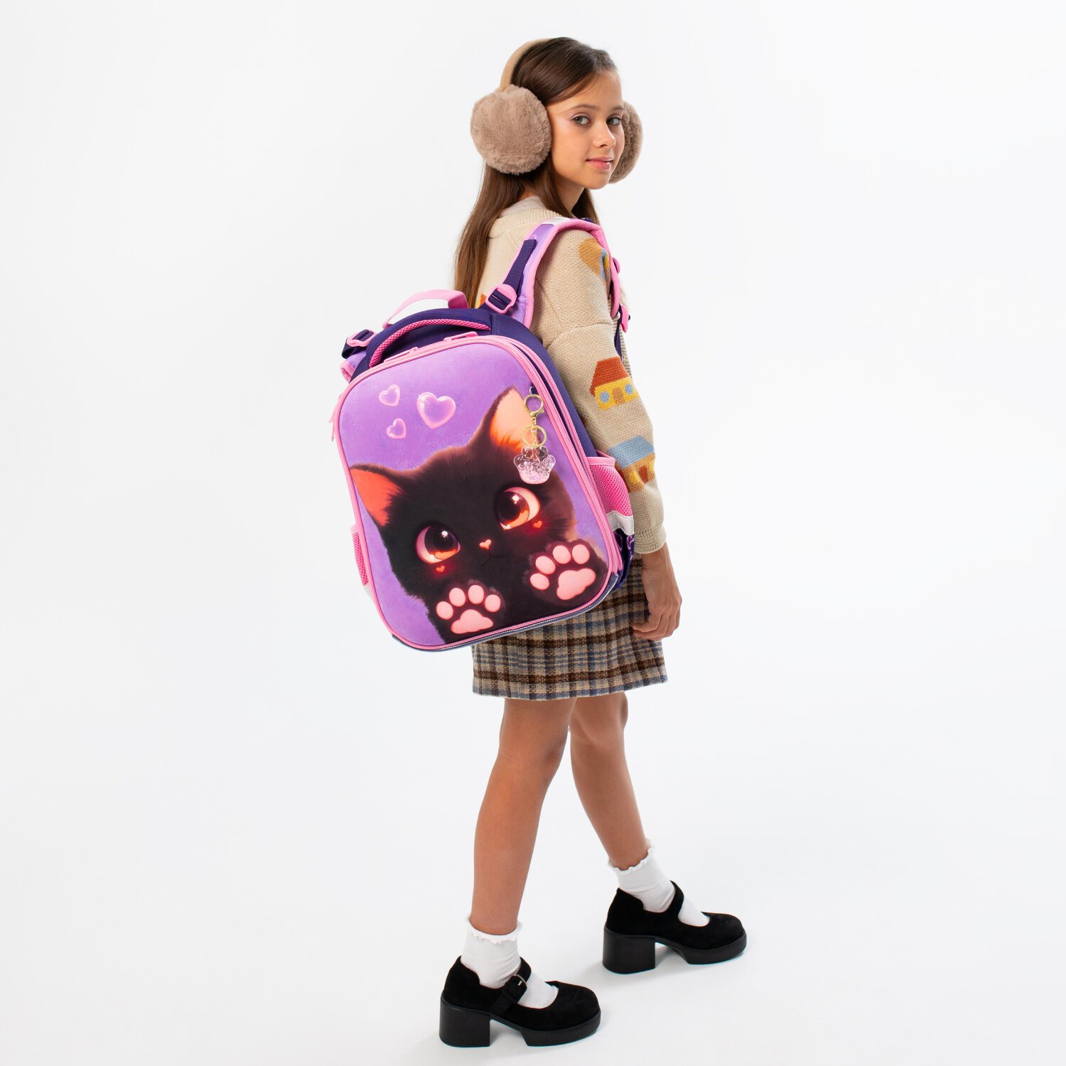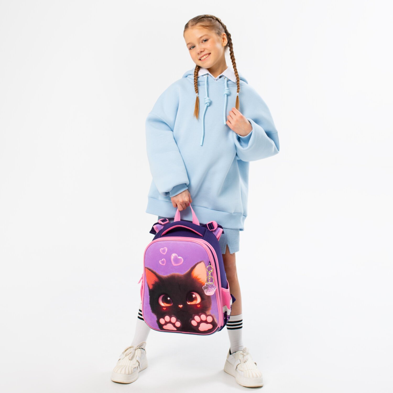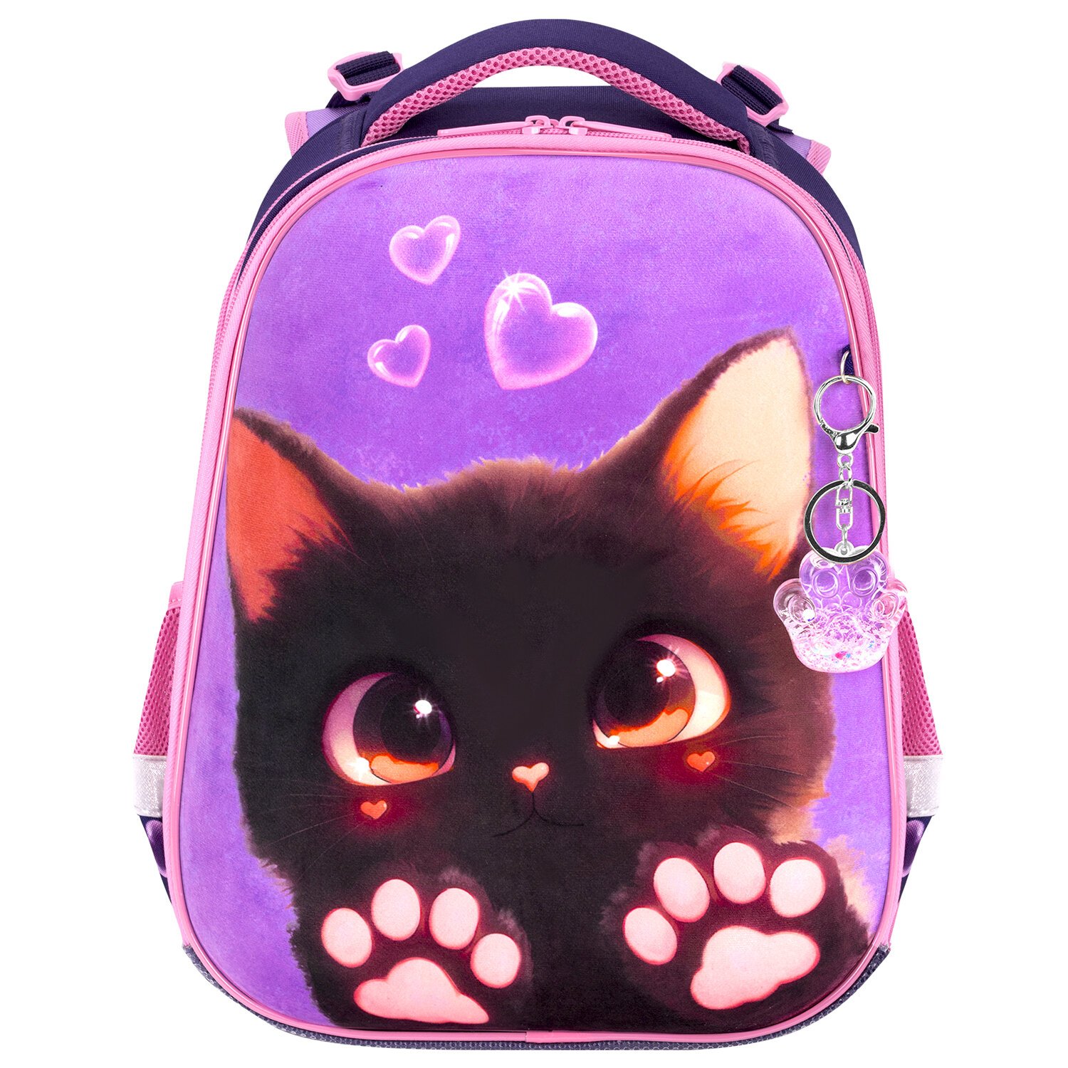 Ранец BRAUBERG PREMIUM, 2 отделения, с брелоком, "Anime cat", 38х29х16 см, 272017