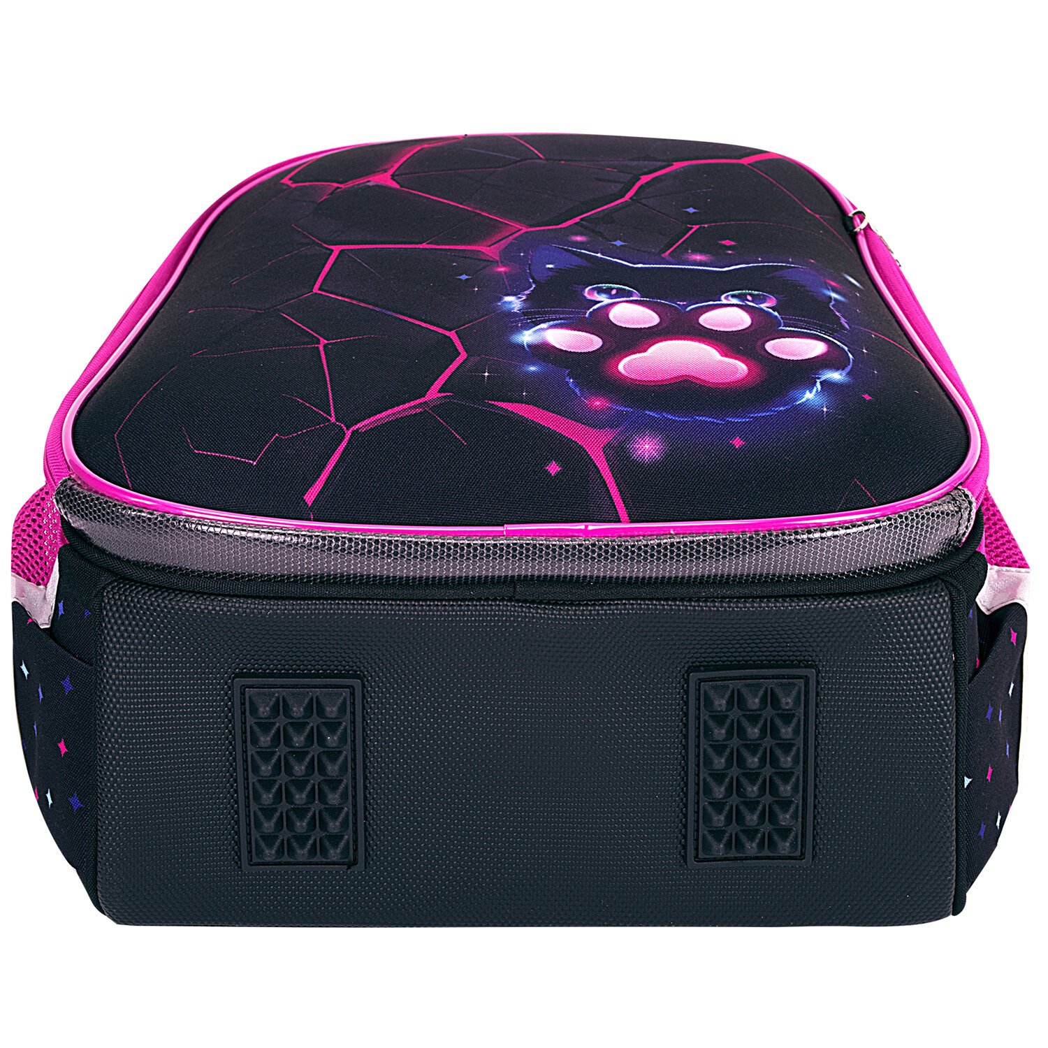 Дно ранца покрыто плотным полиуретаном для защиты от попадания влаги. Дополнительно имеются резиновые ножки для устойчивости и защиты от загрязнений.