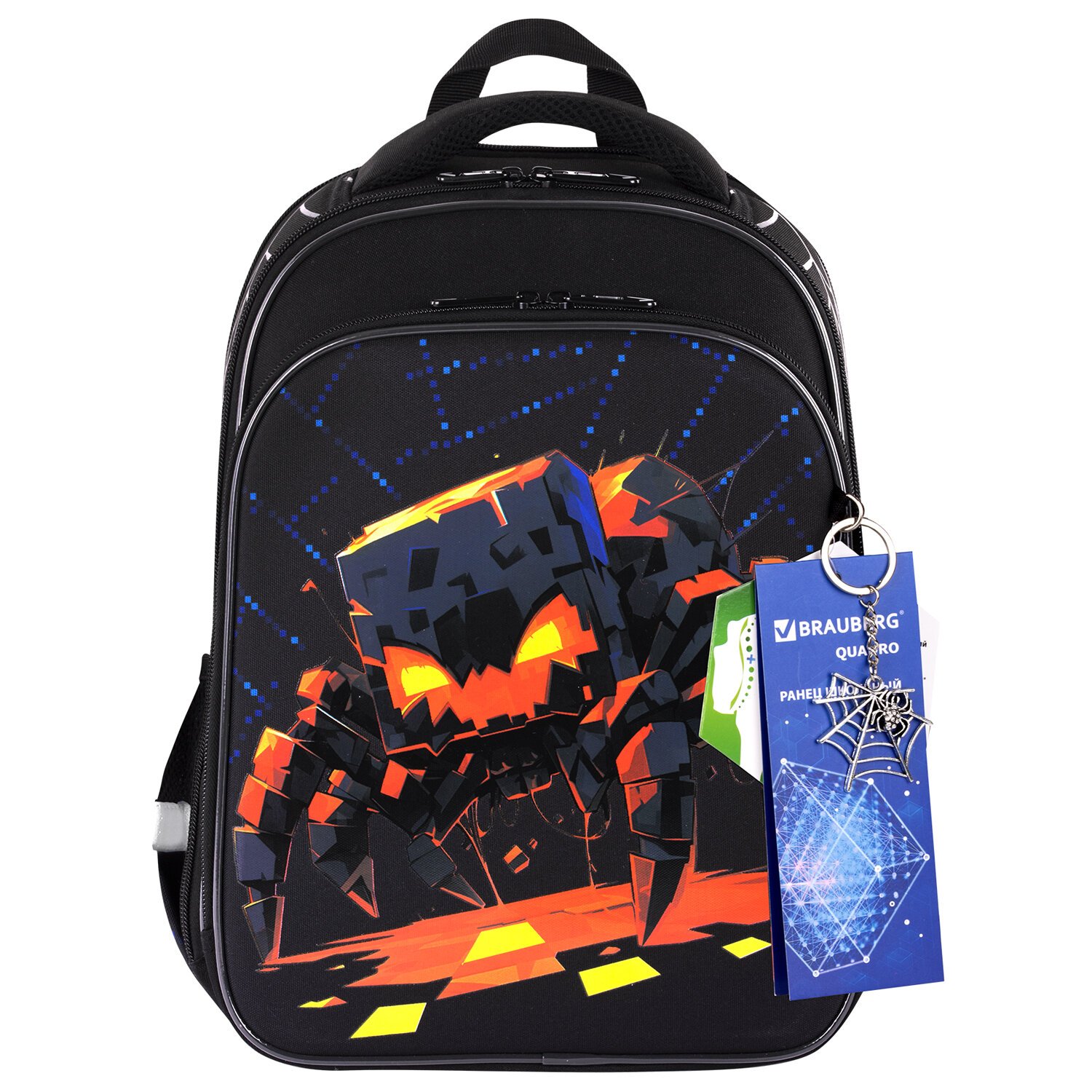 Ранец BRAUBERG QUADRO, 3 отделения, с брелком, Fire spider, 37х28х18 см, 273106
