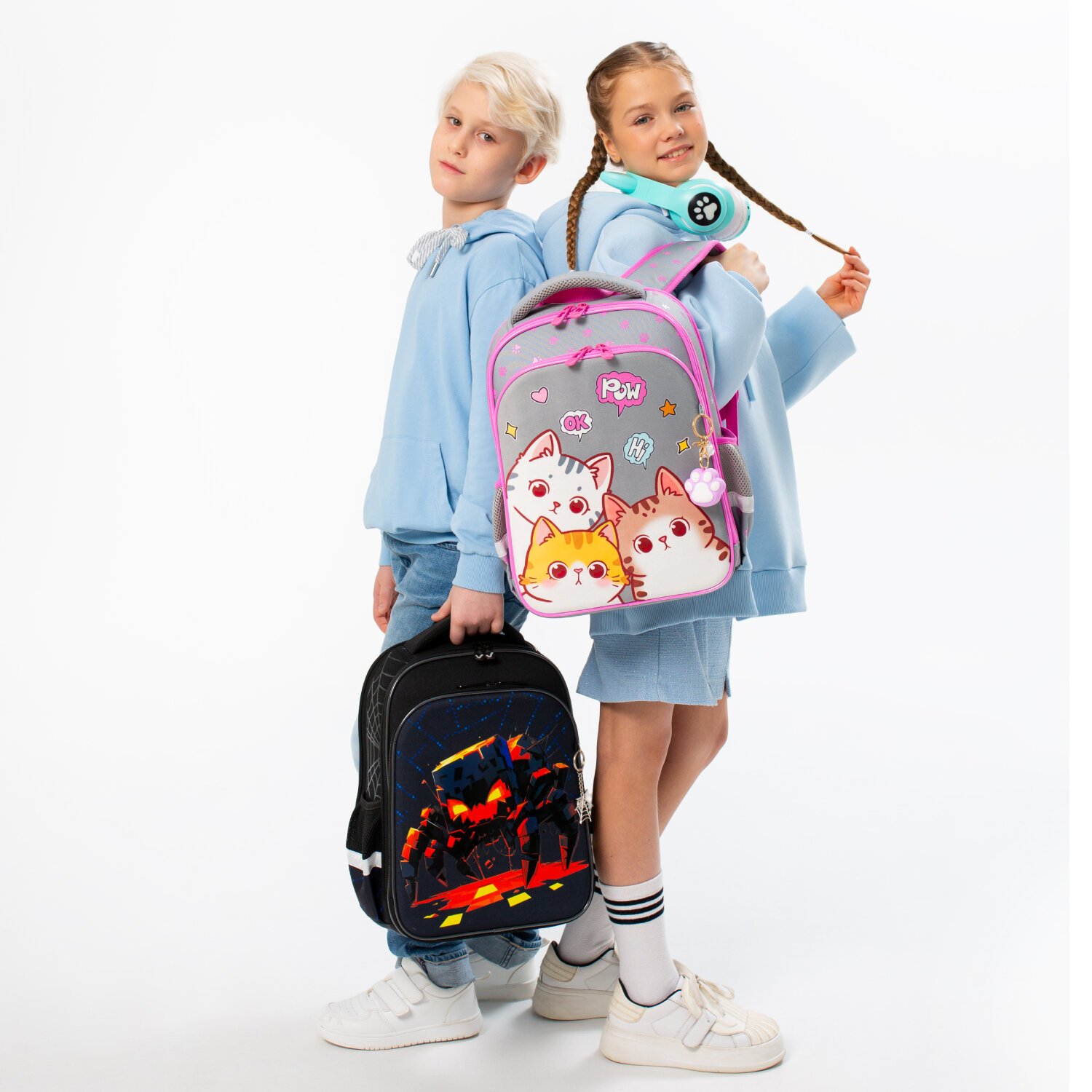Рисунок на передней панели ранца выполнен шелкографией, что делает картинку реалистичной, а оригинальный брелок-подвеска дополняет дизайн ранца.