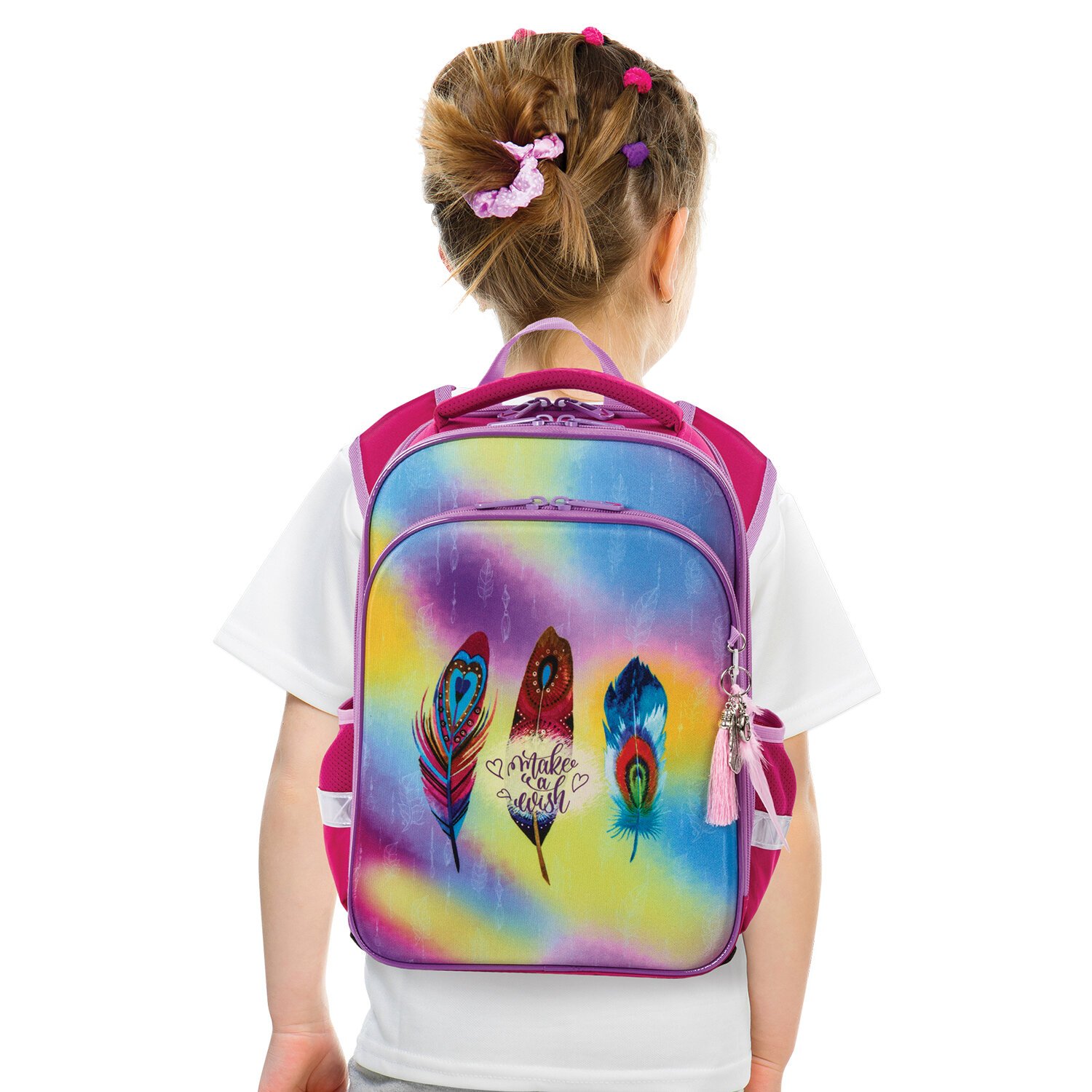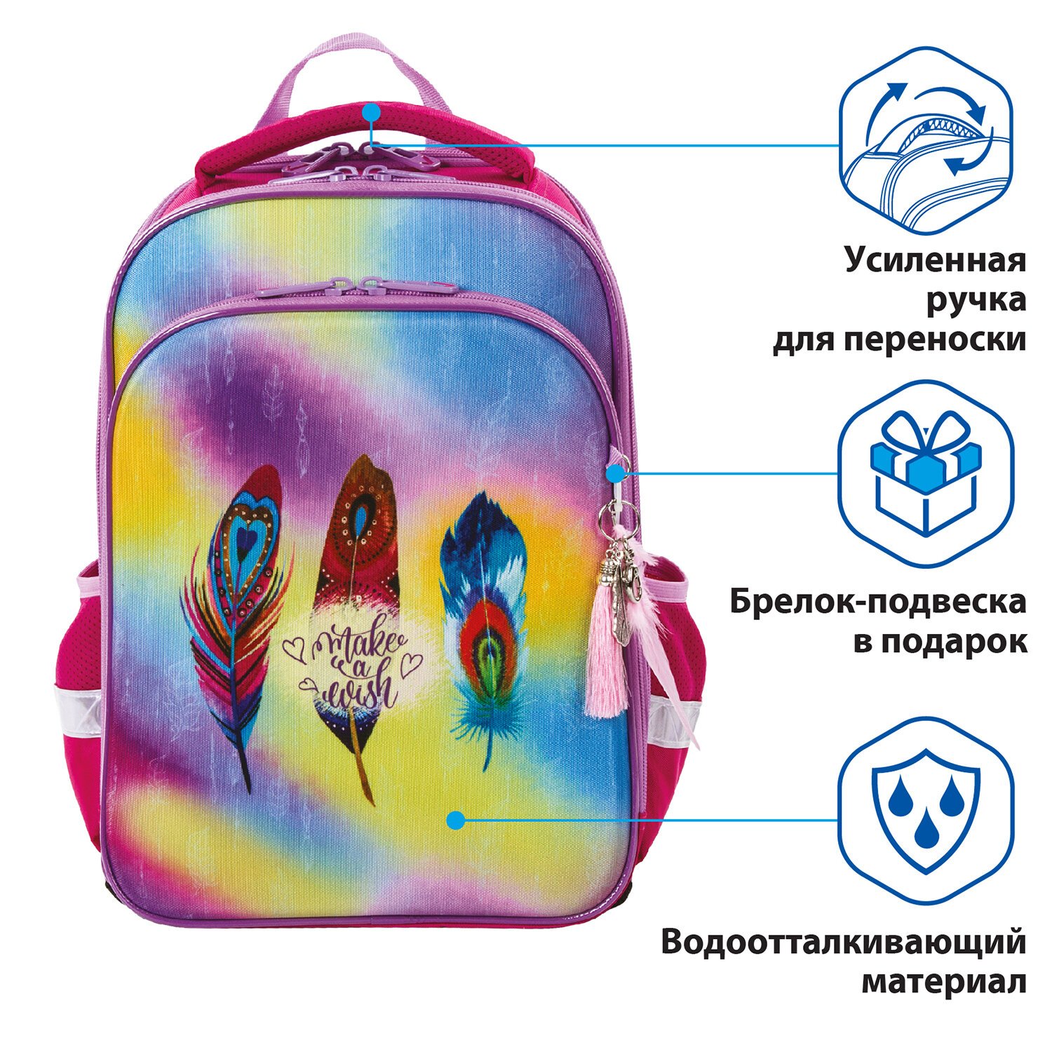 Ранец BRAUBERG QUADRO, 3 отделения, с брелоком, "Plumage", 37х28х18 см, 229953
