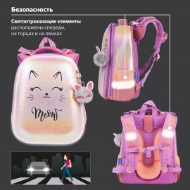Ранец BRAUBERG SHINY, 2 отделения, с брелоком, "Glad to be cat", 38х28х14 см, 271382