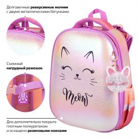 Ранец BRAUBERG SHINY, 2 отделения, с брелоком, "Magic cat", 38х28х14 см, 271381