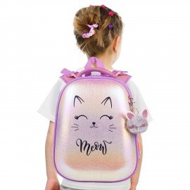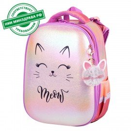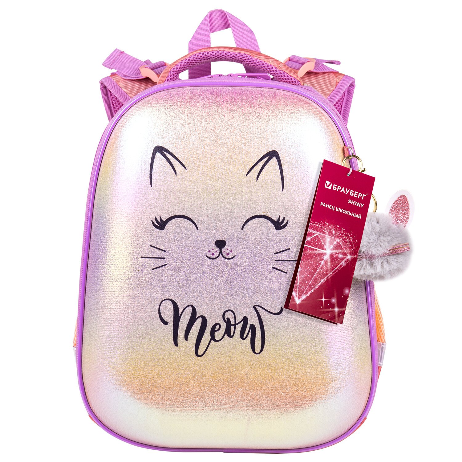 Ранец BRAUBERG SHINY, 2 отделения, с брелком, "Smiling cat", 38х28х14 см, 272040