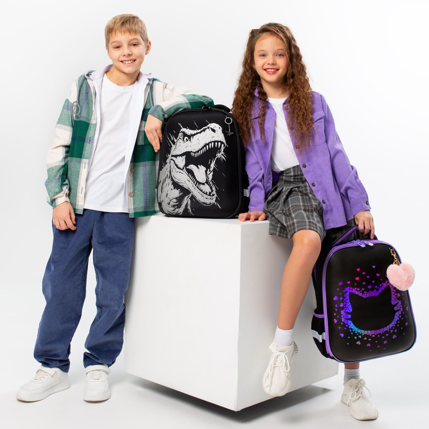 Ранец BRAUBERG SHINY, 2 отделения, с брелком, Scary dino, СВЕТЯЩИЙСЯ РИСУНОК, 38х28х14 см, 273143