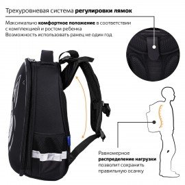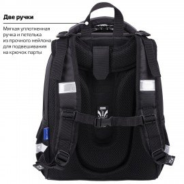 Удобная мягкая вентилируемая спинка с воздушными спонжевыми панелями разработана с учетом анатомических особенностей детей младшего школьного возраста. При правильной регулировке ранец будет практически не ощущаться на плечах и не будет доставлять дискомфорт при носке. В процессе эксплуатации равномерное распределение нагрузки позволит сохранить правильную осанку!