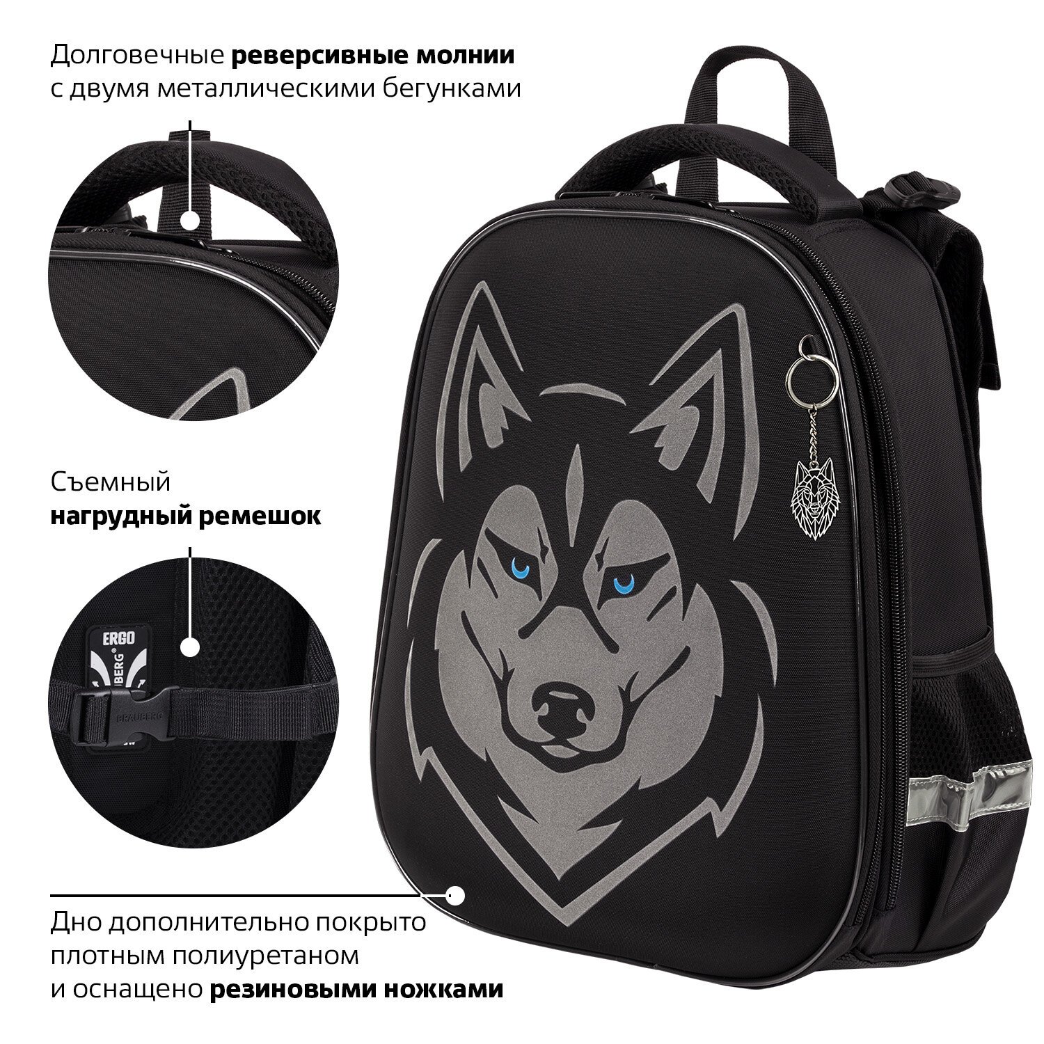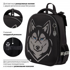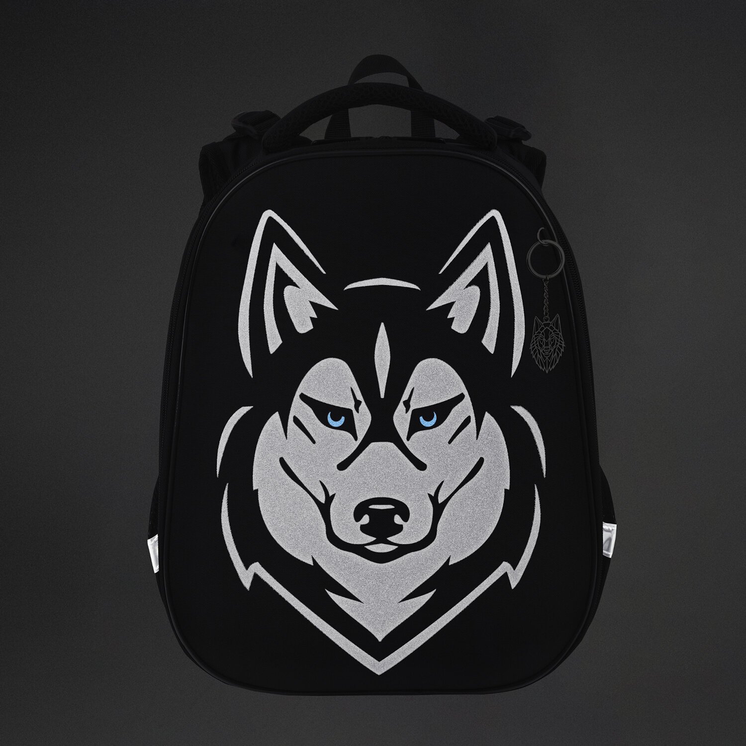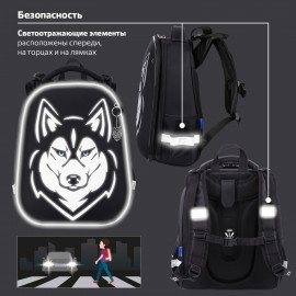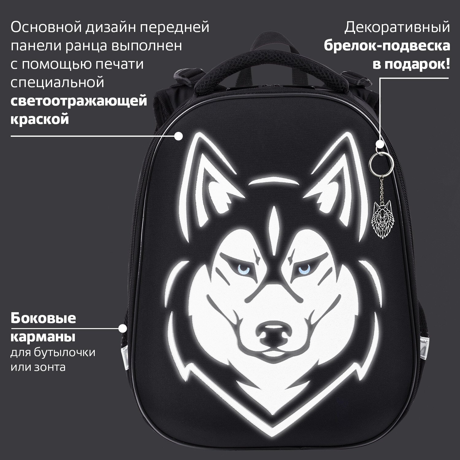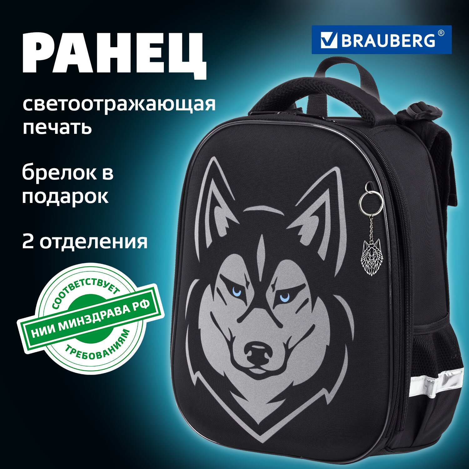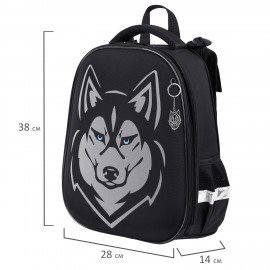 Ранец BRAUBERG SHINY, 2 отделения, с брелоком, "Husky", СВЕТЯЩИЙСЯ РИСУНОК, 38х28х14 см, 271383