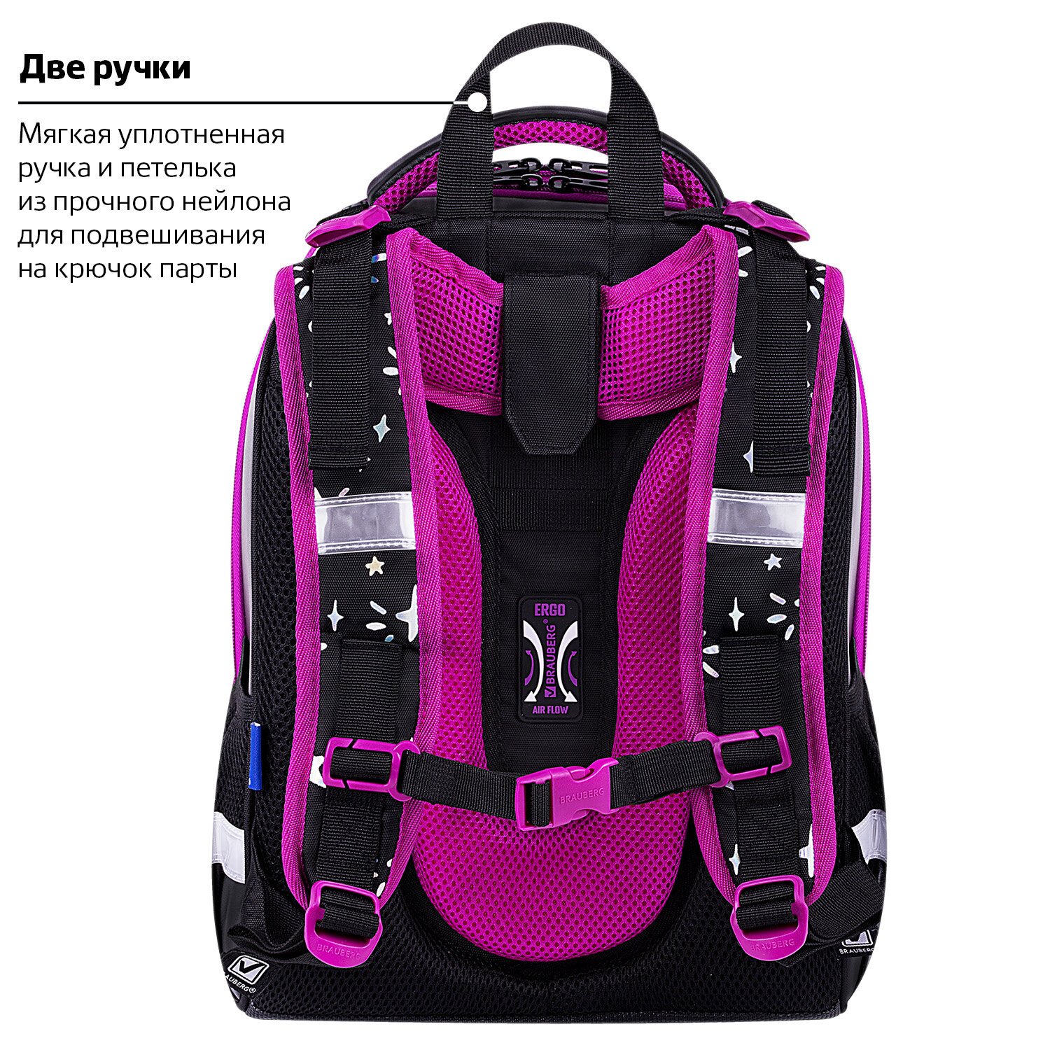 Ранцы BRAUBERG SHINY протестированы НИИ гигиены и охраны здоровья детей и подростков ФГАУ "Национальный медицинский исследовательский центр здоровья детей". В рамках проведенных исследований* было установлено, что конструкции и материалы ученических ранцев соответствуют современным эргономическим требованиям и способствуют формированию здоровой осанки у школьников.