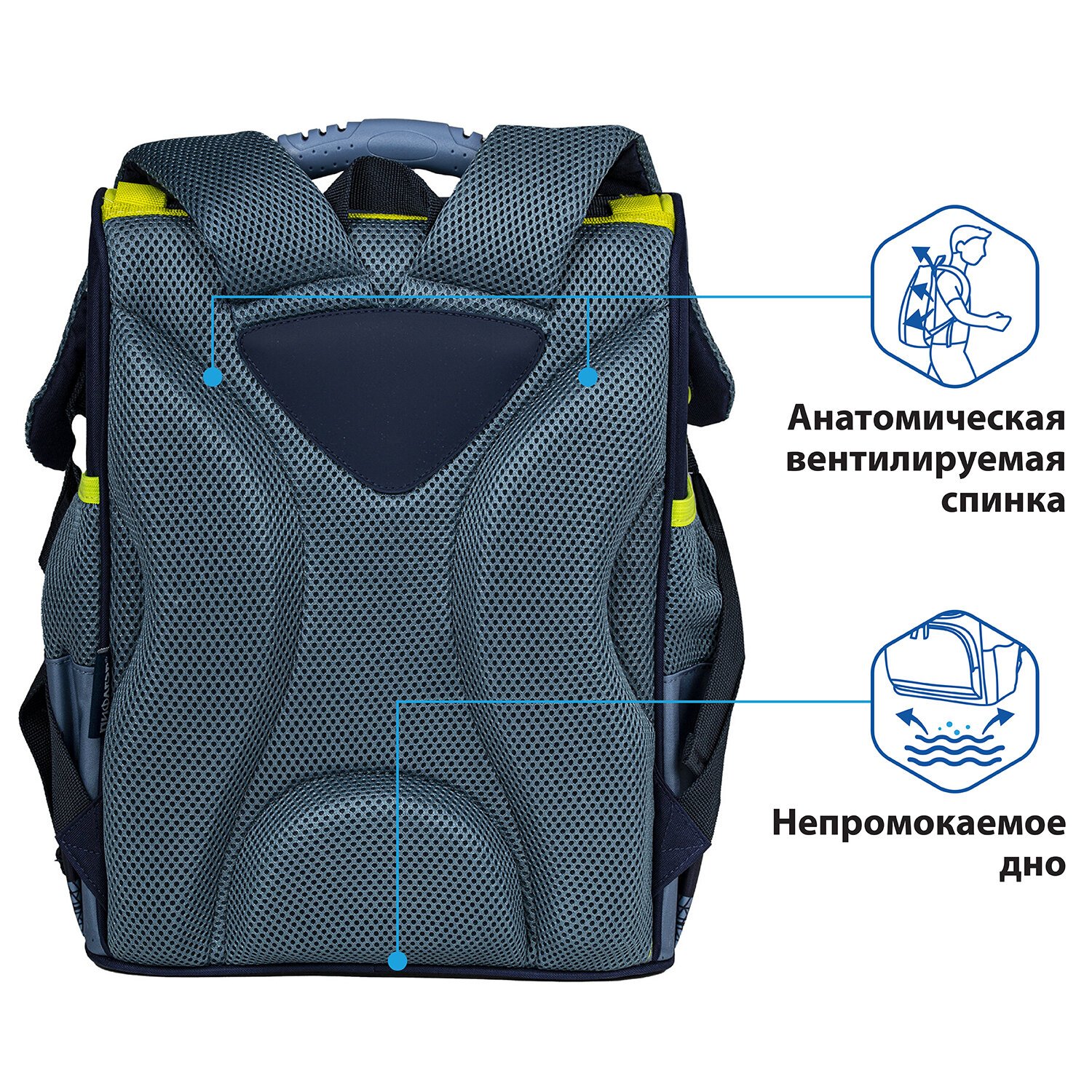 Удобная мягкая вентилируемая спинка с воздушными спонжевыми панелями разработана с учетом анатомических особенностей детей младшего школьного возраста. В процессе эксплуатации равномерное распределение нагрузки позволит сохранить правильную осанку!