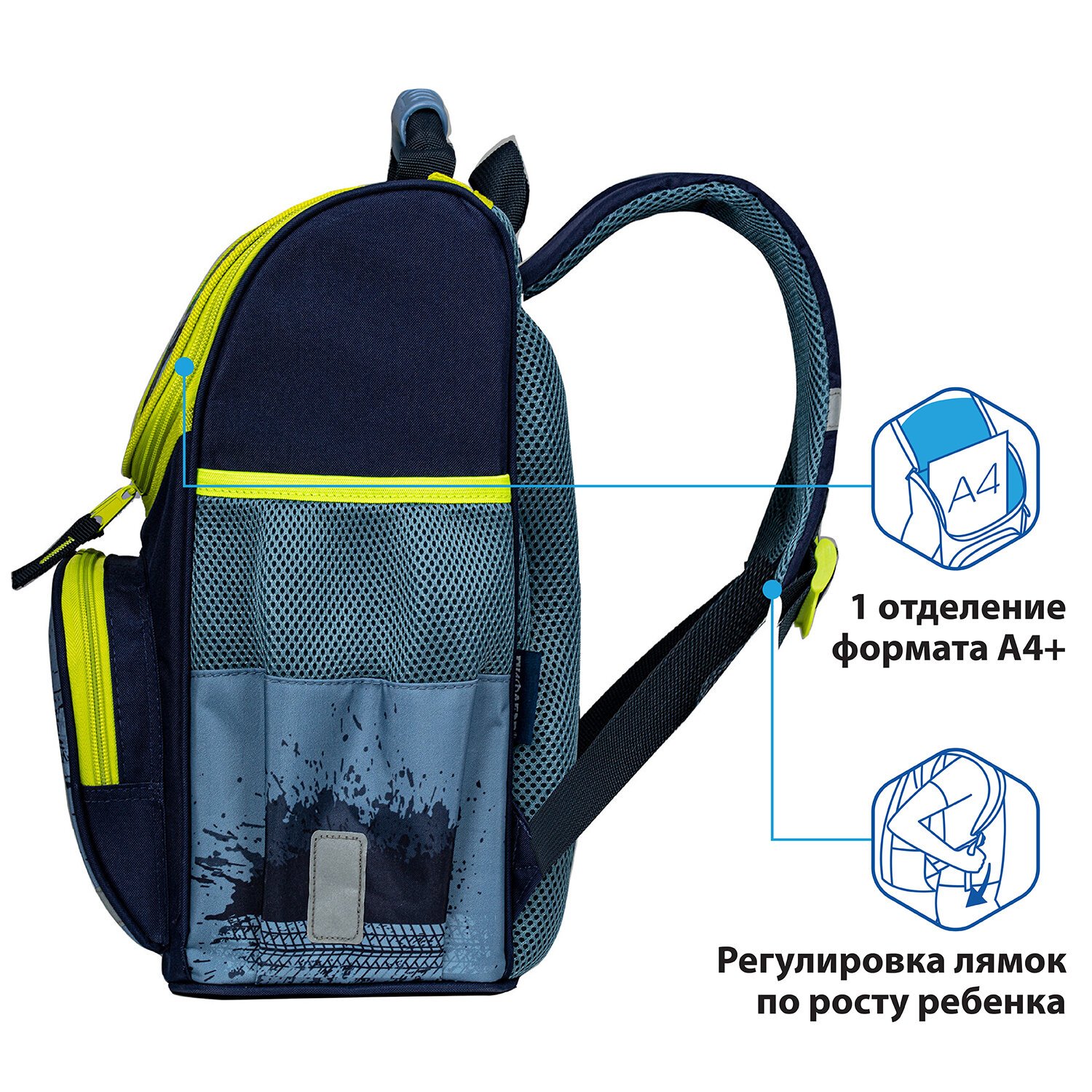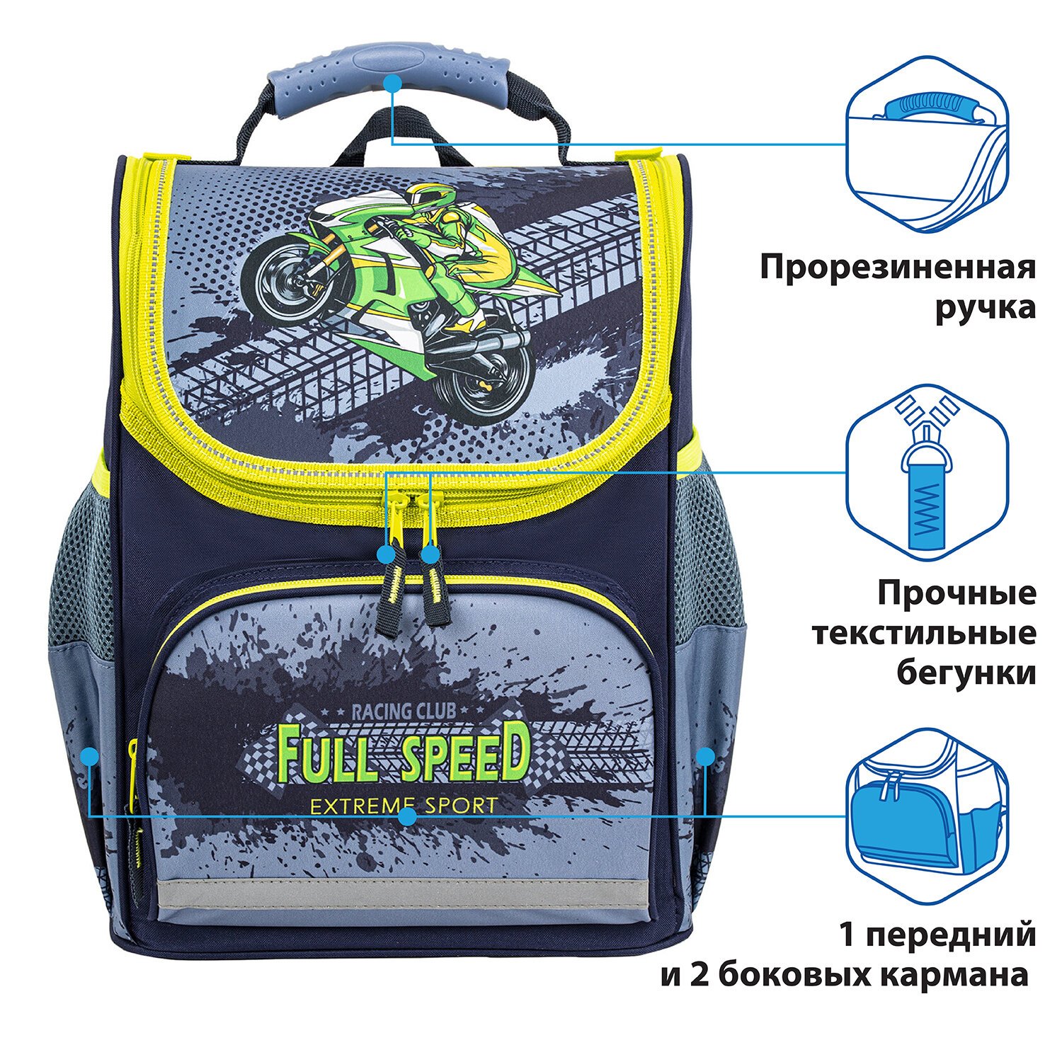 Ранец ПИФАГОР BASIC, с эргономичной спинкой, "Full speed", 35х28х18 см, 270687