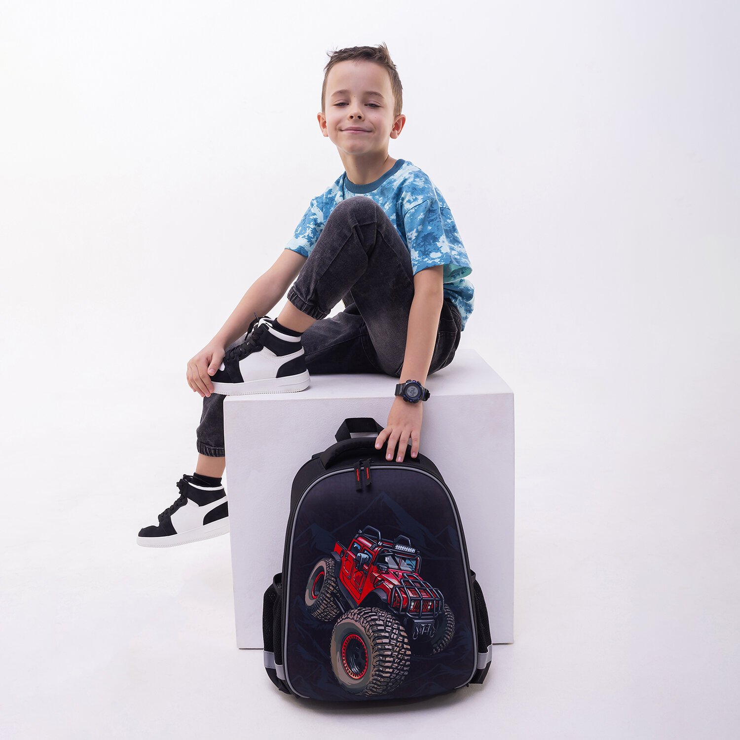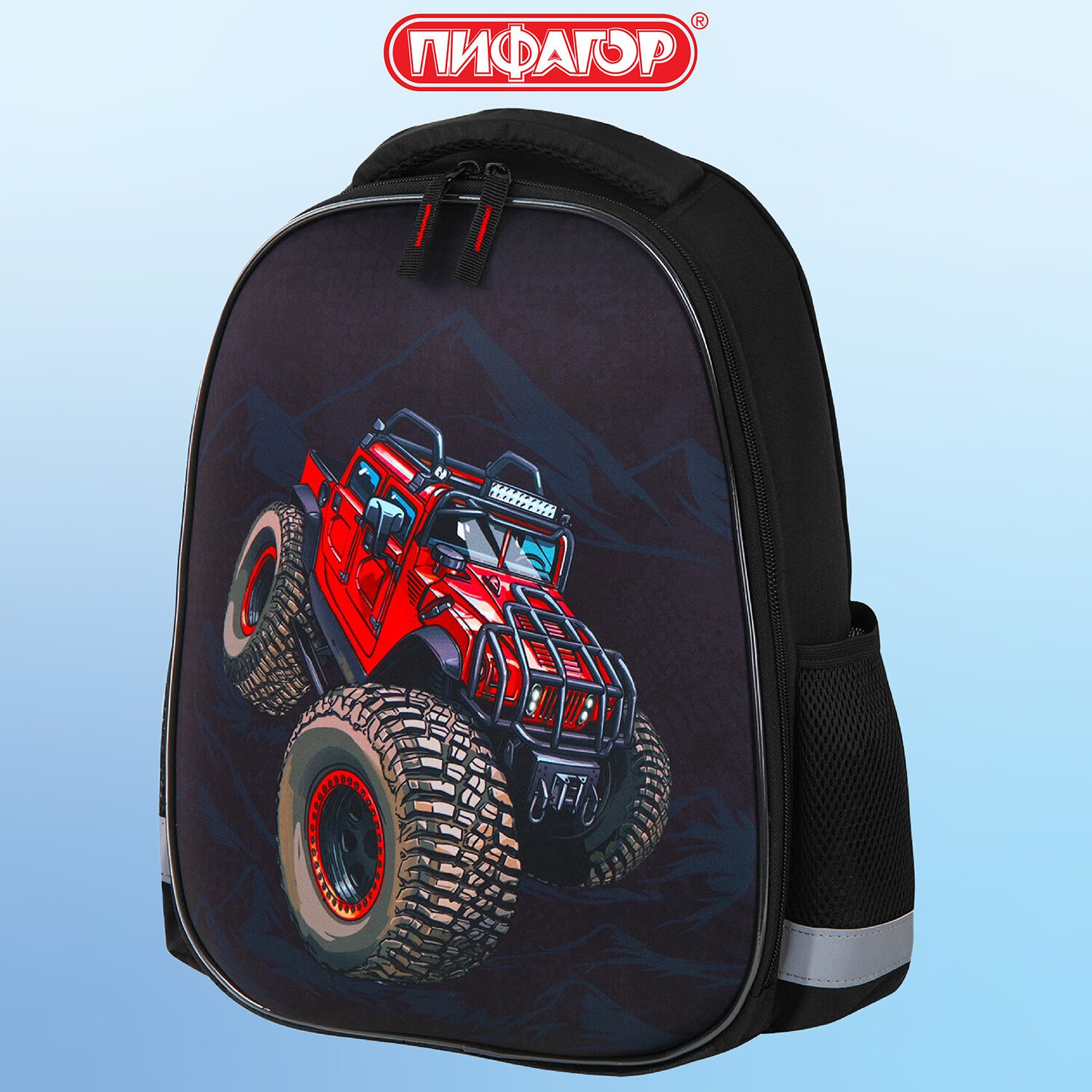 Ранец ПИФАГОР EVA BASIC, 1 отделение, эргономичная спинка, "Big wheels", 39х30х16 см, 271378
